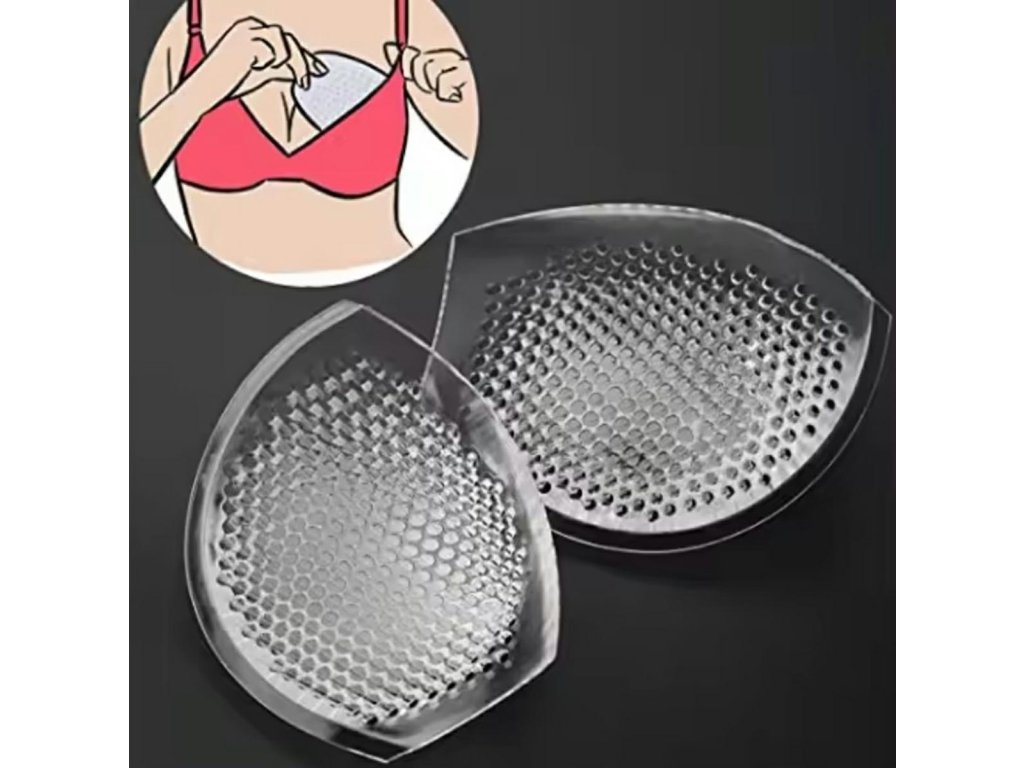 Silikonové výplňové vložky do podprsenky - opakovaně použitelné. Dokonale zvednou ňadra při zachování jejich přirozeného tvaru. Vyrobeno z bezpečného a prodyšného materiálu. Obě vložky mají speciální perforaci, která umožňuje neustálou výměnu vzduchu. Voděodolný silikon umožňuje použití vložek k plavkám.
