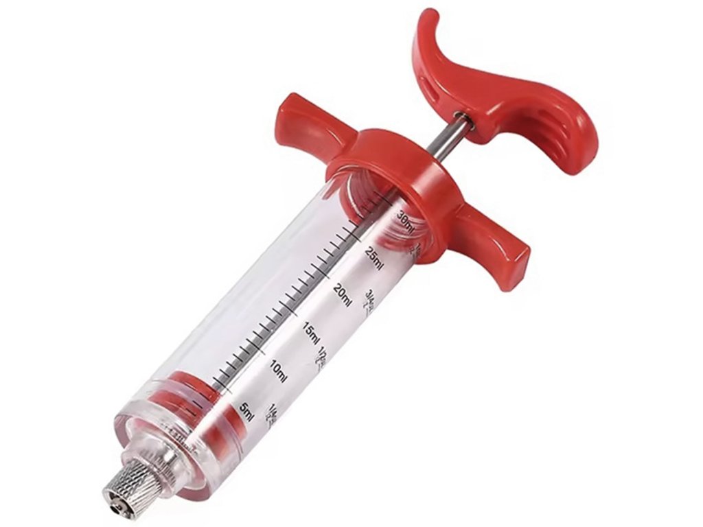 - Velmi snadné použití. Jednoduše naplňte stříkačku kořením/marinádou a vstříkněte obsah do masa pomocí jedné z jehel.