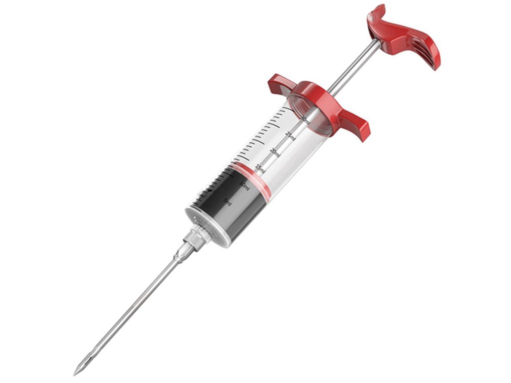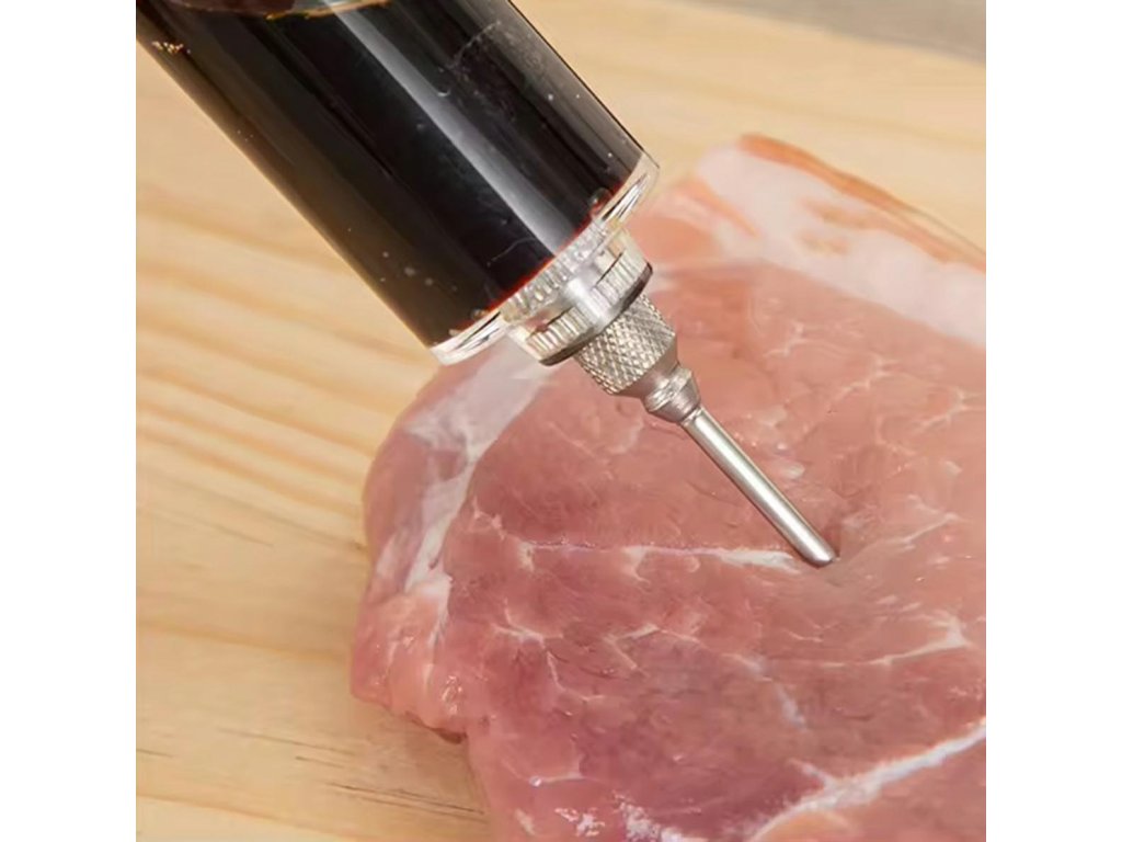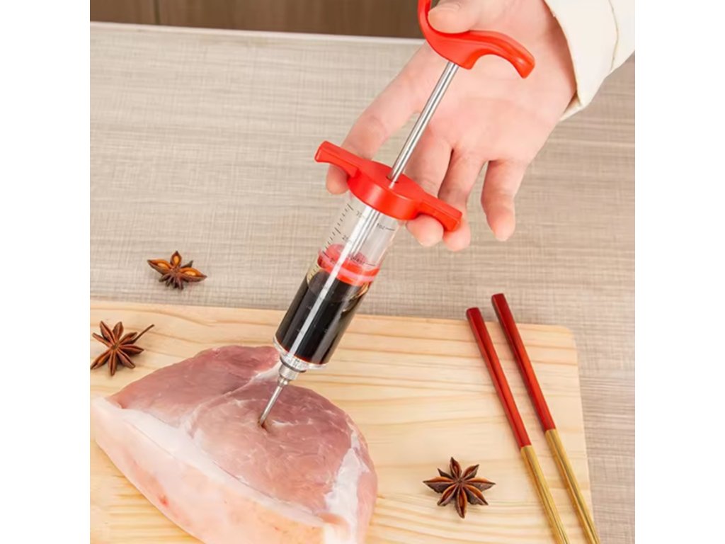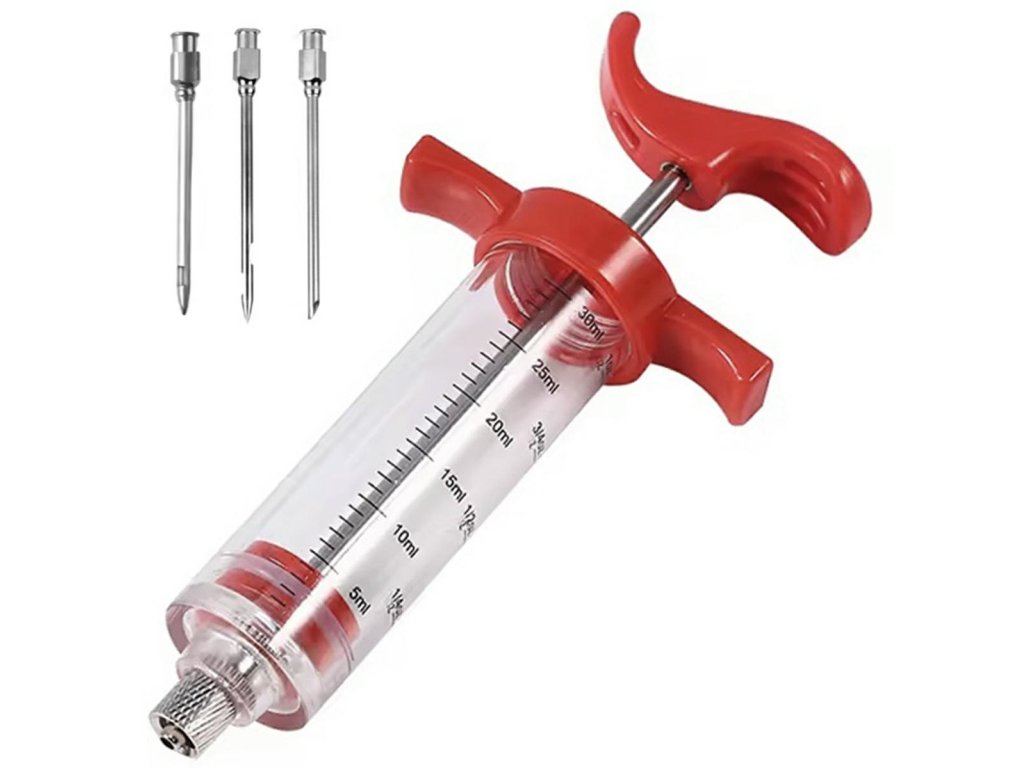 Injektor na maso o objemu 30 ml. Vynikající sada vybavená 3 ocelovými jehlami různých délek. Umožňuje rychle a pohodlně zvýraznit chuť masa vstříknutím marinády, omáčky nebo koření. Nenahraditelná pomůcka v každé kuchyni a udírně!