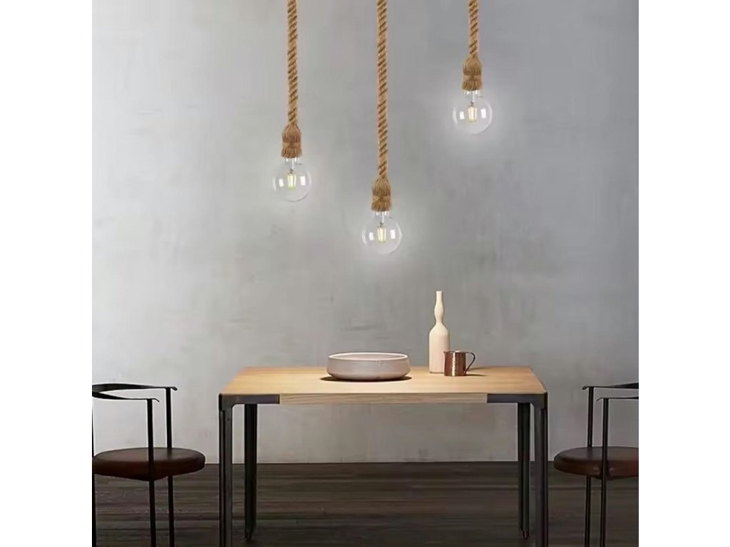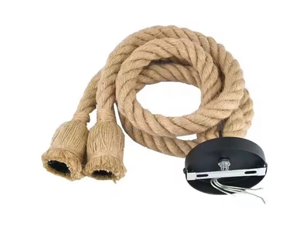 - Obě ramena lampy jsou omotaná pravým jutovým provazem.
