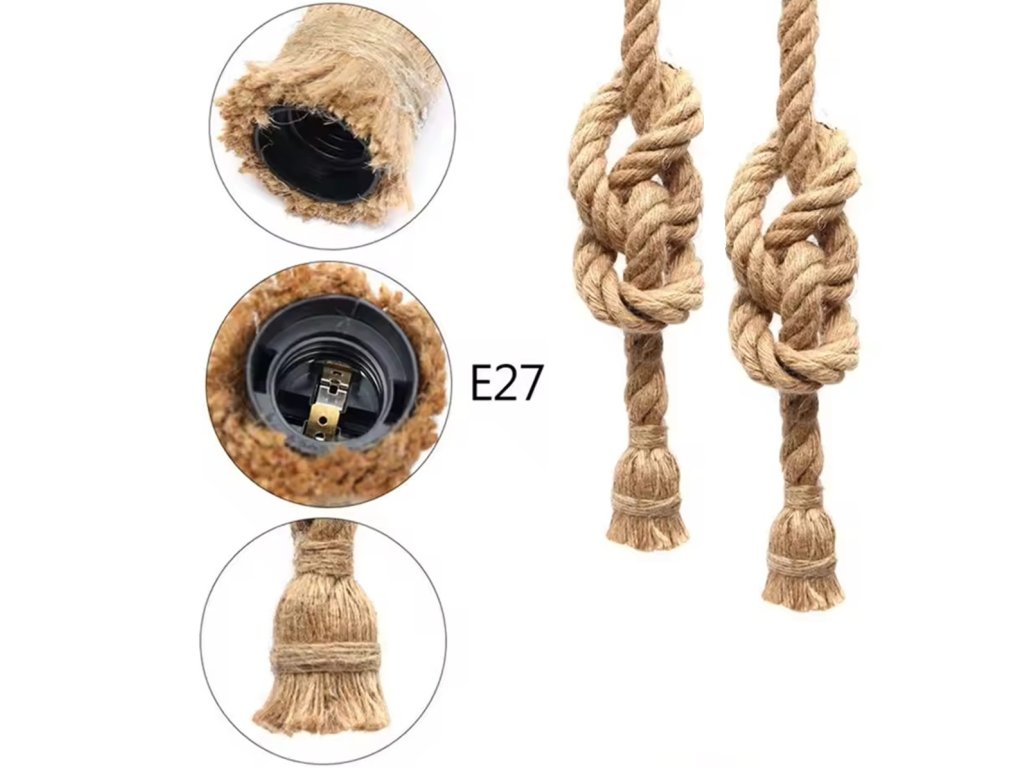 APT STROPNÍ SVĚTLO E27 JUTOVÉ LANO 2x1M