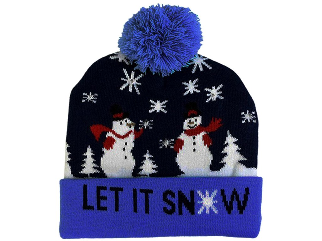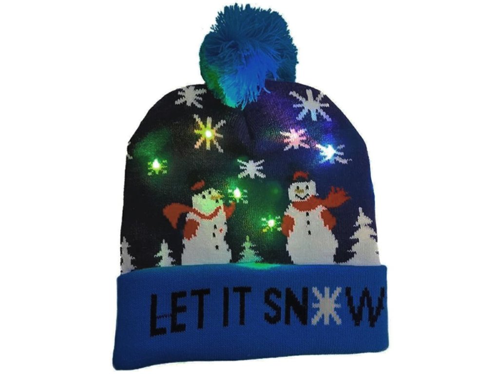 - Czapka z podświetleniem LED i motywem bałwanków.