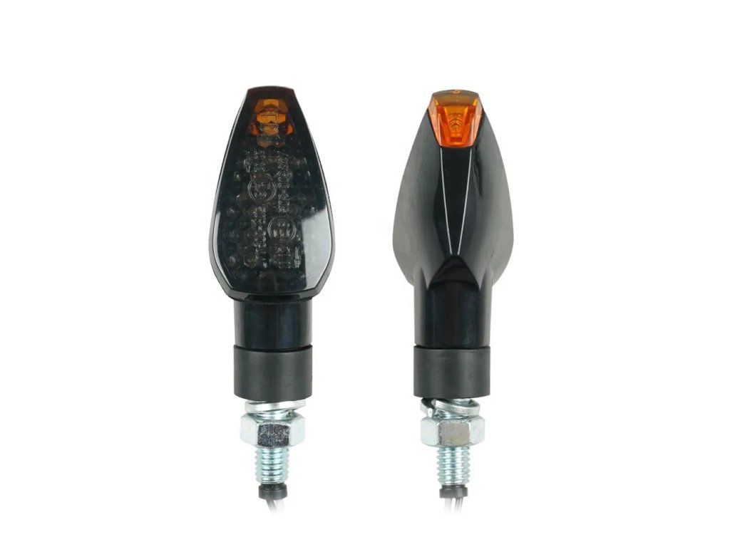 Univerzální LED blinkry pro dvoukolky. Perfektní doplněk k vaší motorce. LED diody poskytují silné oranžové světlo - výrazně zlepšují viditelnost. Charakteristický dynamický přechod LED při provádění manévru zvyšuje estetický dojem. Pasují na všechny motocykly vybavené standardním závitem M10.