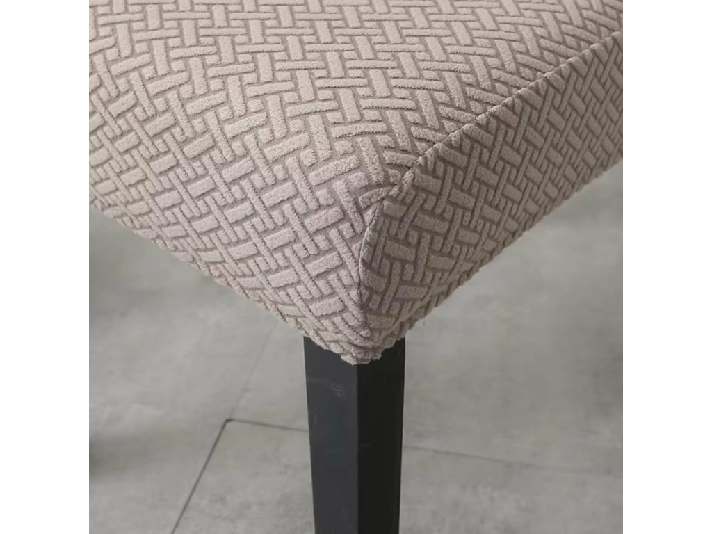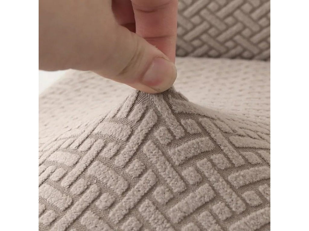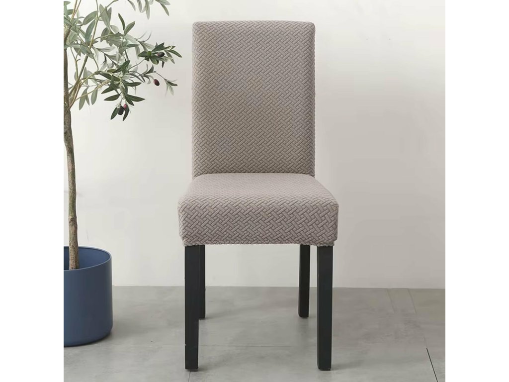 Uniwersalny pokrowiec na krzesło – wzór jodełka. Wykonany z miłego w dotyku materiału imitującego welur. Wysoka rozciągliwość ułatwia jego naciągnięcie na siedzisko i oparcie różnych typów krzeseł. Możliwość prania w pralce (w temperaturze 30 stopni).