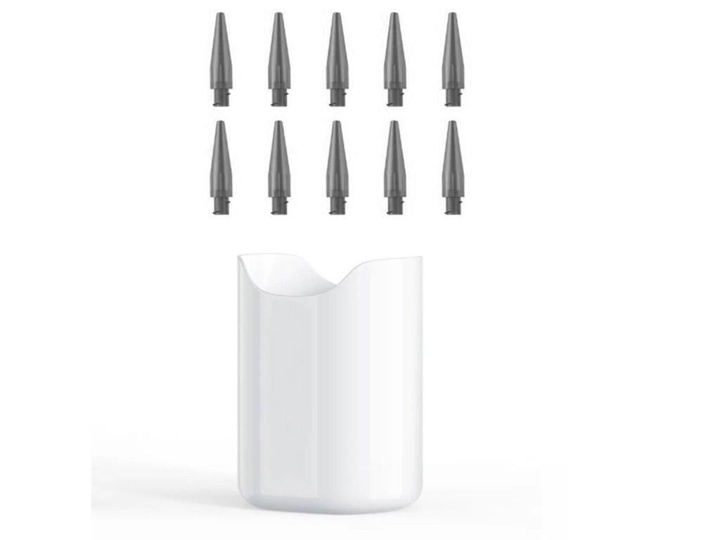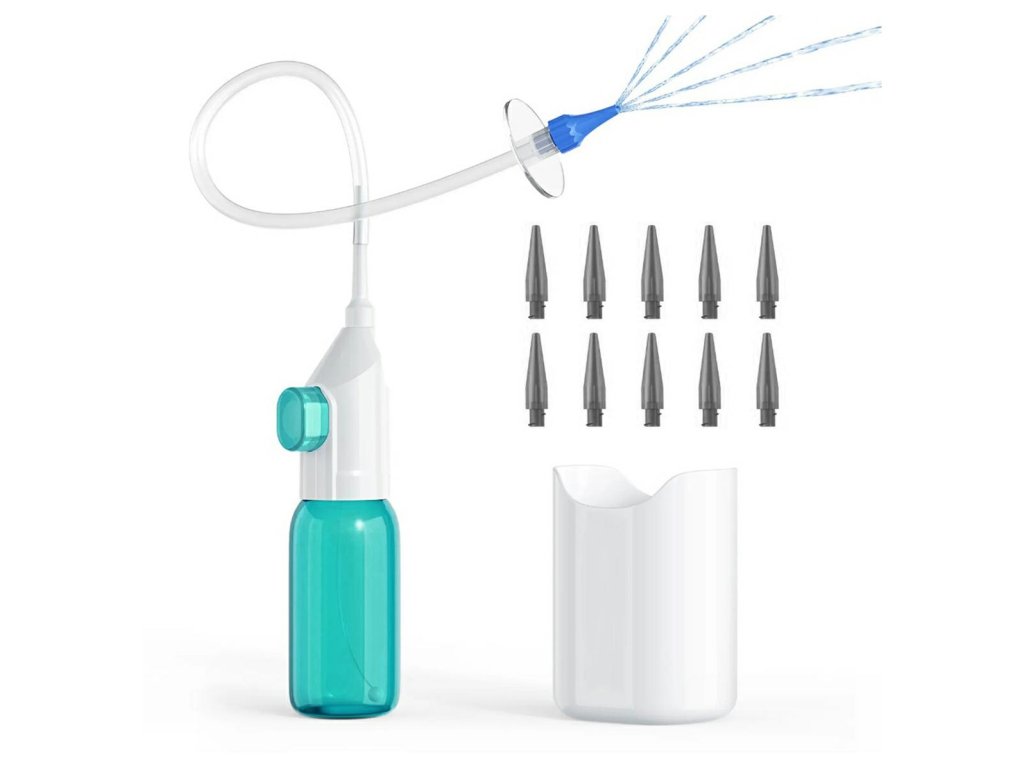 - Sada obsahuje 10 jednorázových koncovek přizpůsobených uživateli a nádobu na špinavou vodu po ošetření.