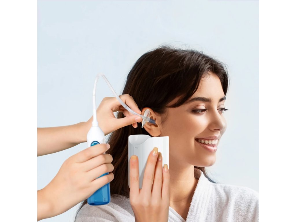 Zařízení na čištění uší – irigátor. Umožňuje rychlé a pohodlné vyplachování uší. Účinně odstraňuje nahromaděný ušní maz. Irigátor je vybaven zásobníkem na teplou vodu, flexibilní hadicí a výstupní tryskou. Sada obsahuje 10 jednorázových koncovek přizpůsobených uživateli a nádobu na znečištěnou vodu po použití.