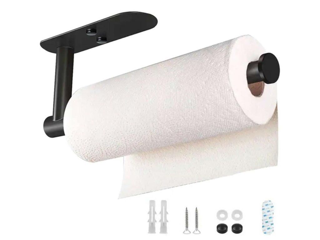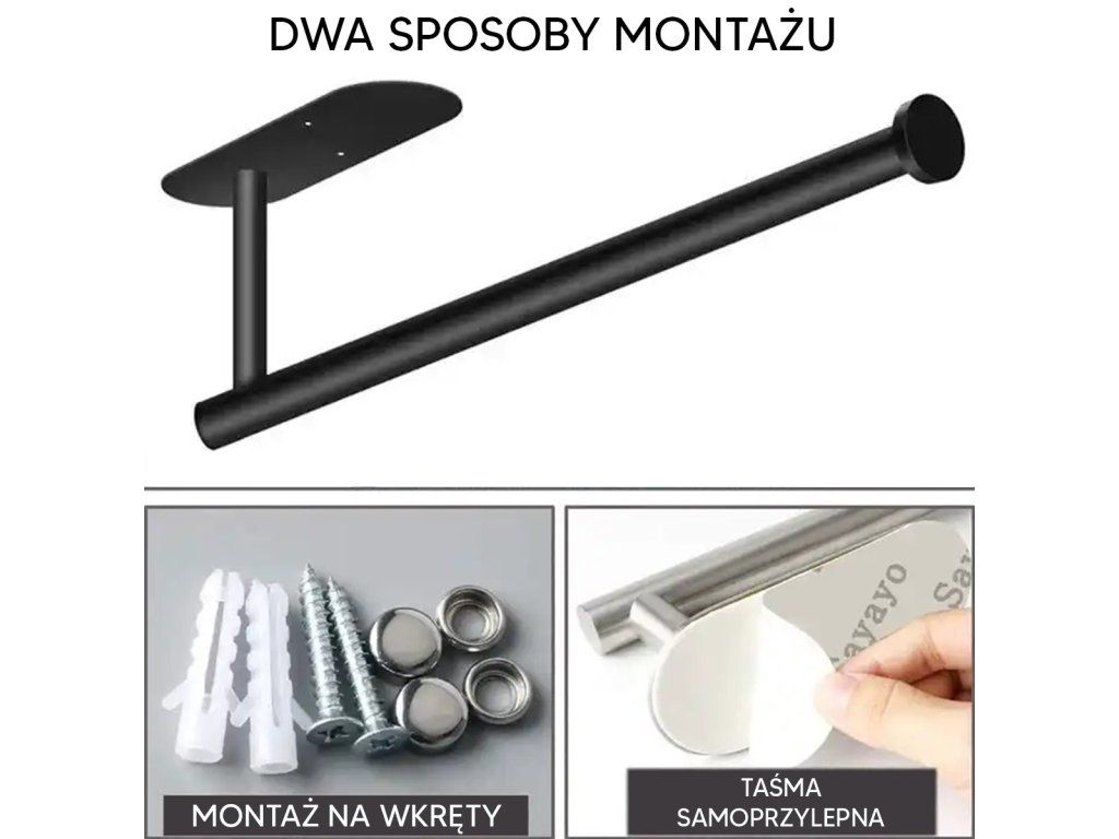 Pohodlný ocelový držák na papírové ručníky. Určeno pro montáž pod kuchyňskou skříňku nebo na zeď. Funguje perfektně v těsných kuchyních a šetří cenný prostor na pracovní desce. Dva způsoby montáže v závislosti na vašich potřebách. Pomocí samolepicí pásky nebo přiložených šroubů a hmoždinek.