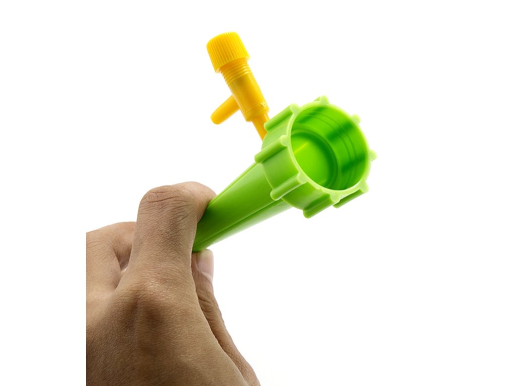 Zcela nová, vysoce kvalitní zavlažovačka na rostliny v květináčích, našroubovaná na standardní závit lahve. Zajišťuje dostatečný přístup vegetace ke zdroji vody i při delší nepřítomnosti. Napáječka má přídavný kohoutek a těsnění pro regulaci rychlosti proudění vody.