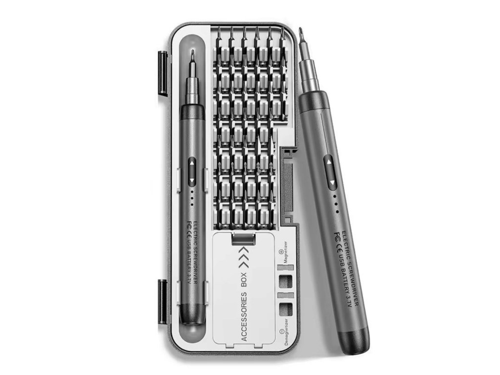 - 1× Elektryczny śrubokręt z akumulatorem 3.7V (ładowany przez USB-C)