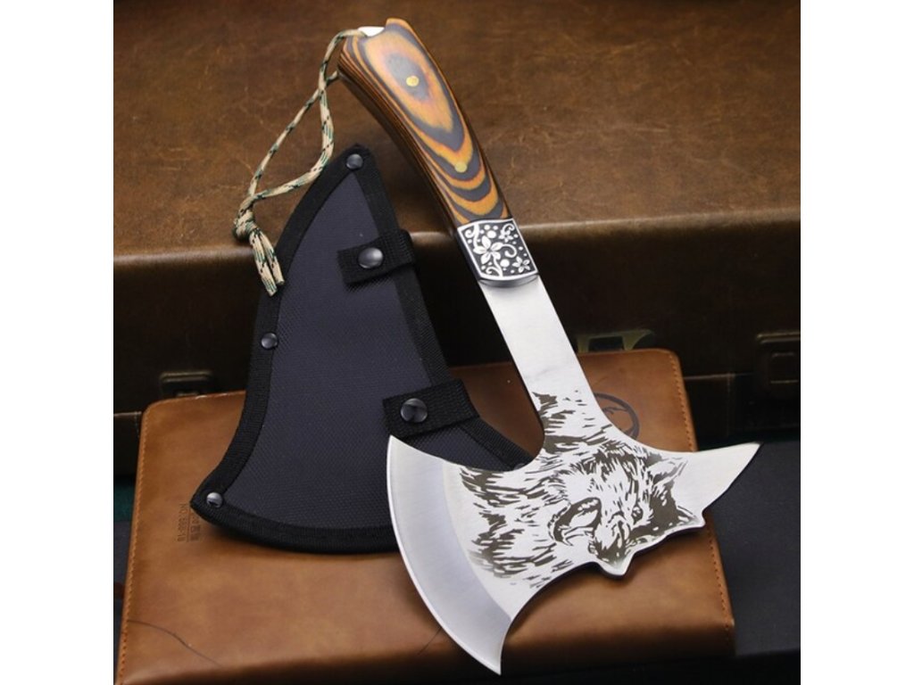 Sekera nůž sekera tomahawk sekera vlk pouzdro 32cmSekera je vyrobena z oceli vysoké tvrdosti.