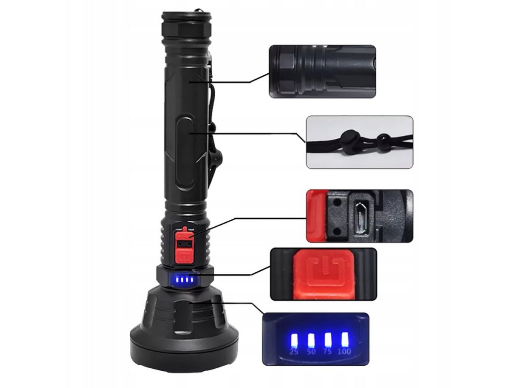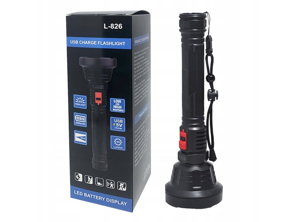 Taktická vojenská dobíjecí LED USB svítilnaTaktická svítilna je ideálním zdrojem světla na procházkách, túrách, při kempování, ale skvěle poslouží i v nouzových situacích, například při výpadku proudu.