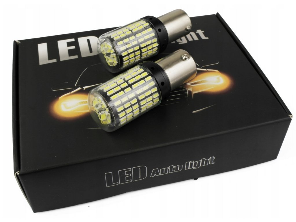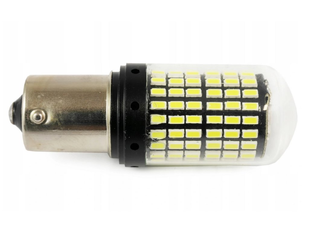 Žárovky p21w 144 led smd 3014 canbus ba15sŽárovky P21W LED 144 SMD 3014 lze použít jako zdroj světla pro denní svícení, směrová světla (s oranžovým difuzorem), STOP světla, parkovací světla, couvací světla atd.