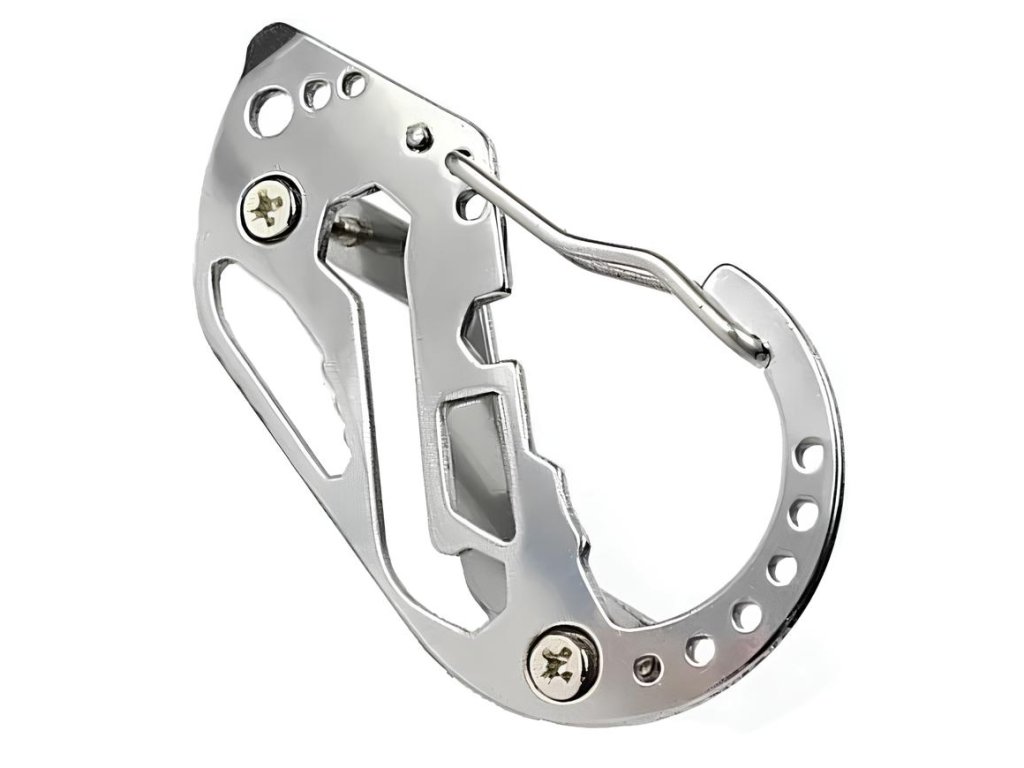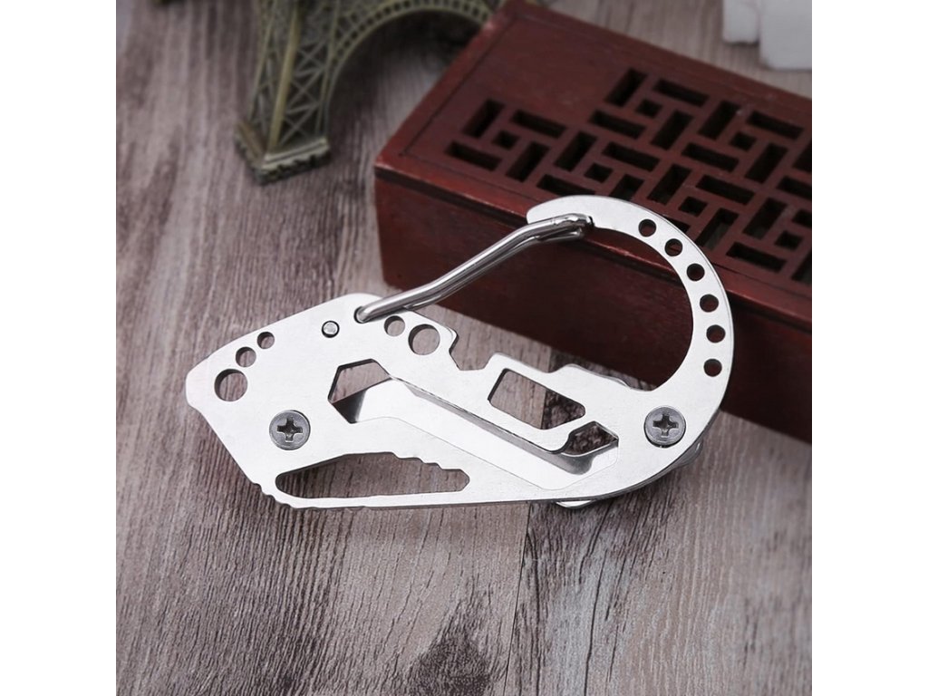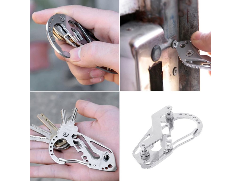 MULTIFUNKČNÍ NÁSTROJ KARABINANerezová karabina na klíče je praktickým řešením, které vám umožní zbavit se nepohodlného a cinkajícího svazku klíčů .