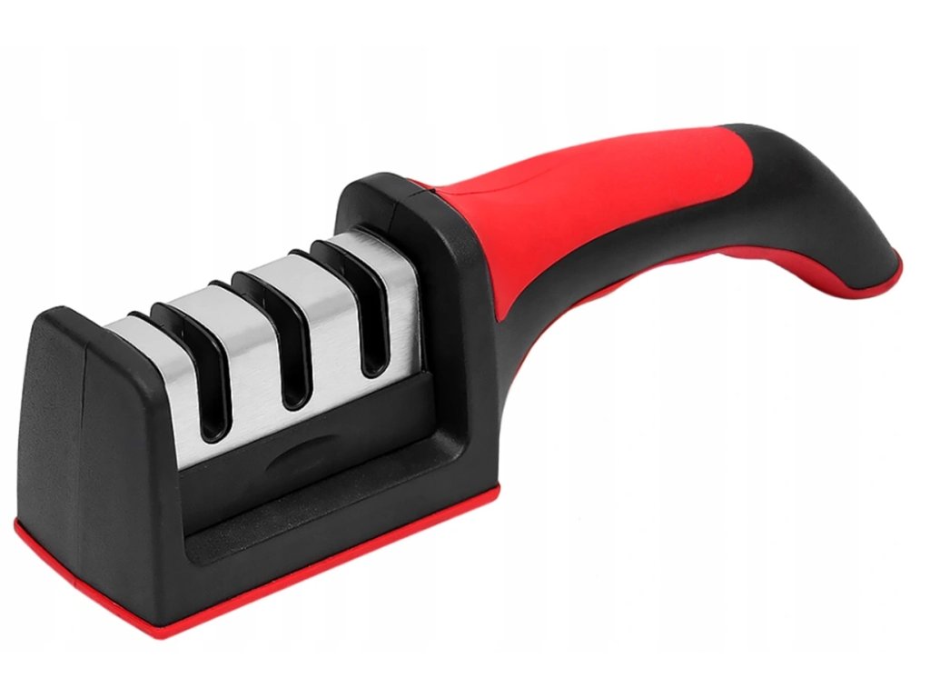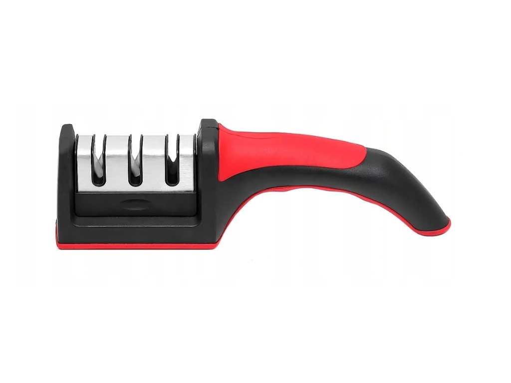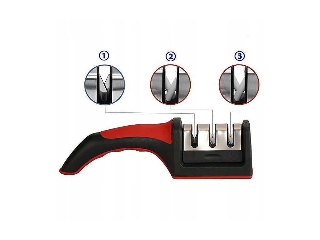 Ostrzałka do noży kuchennych trójstopniowa osełka 3w1Trójstopniowa ostrzałka do noży umożliwiająca naostrzenie nawet najbardziej zaniedbanych noży dzięki zastosowaniu aż 3 gniazd ostrzących w różny sposó.