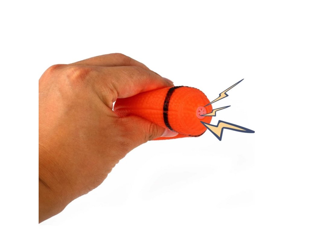 Při stisknutí nebo kousnutí hračka vydává vrzavý zvuk , který přiláká každého mazlíčka.