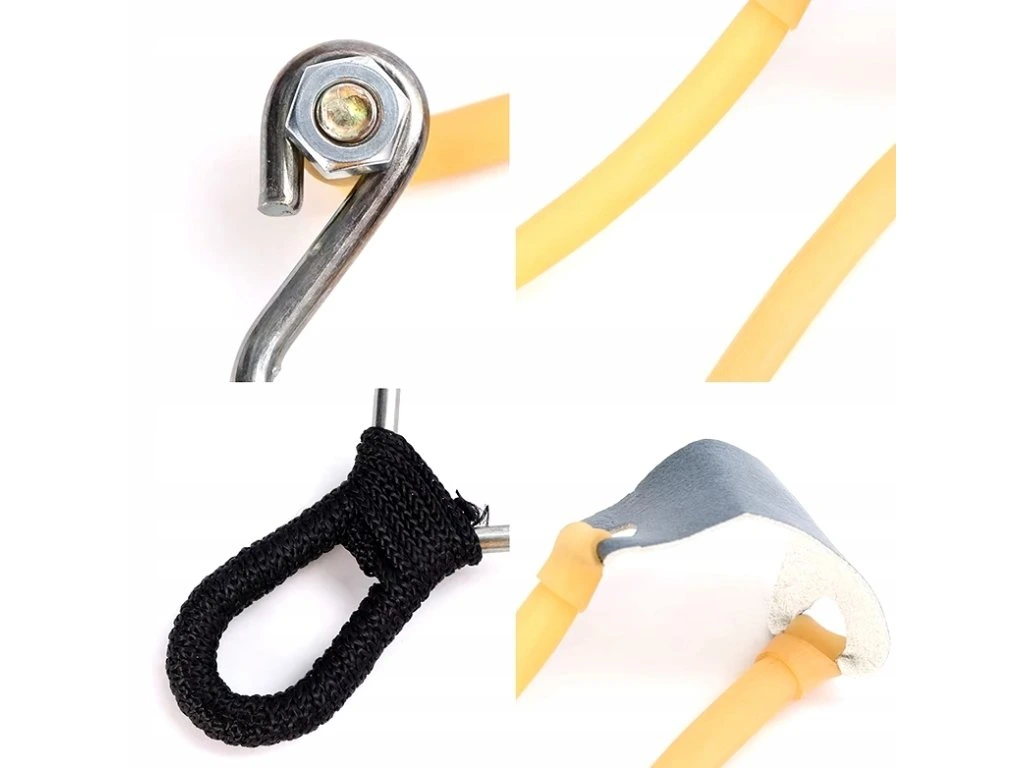Má silné a odolné gumové gumy a koš, které umožňují vystřelit projektil na vzdálenost až 500 m.