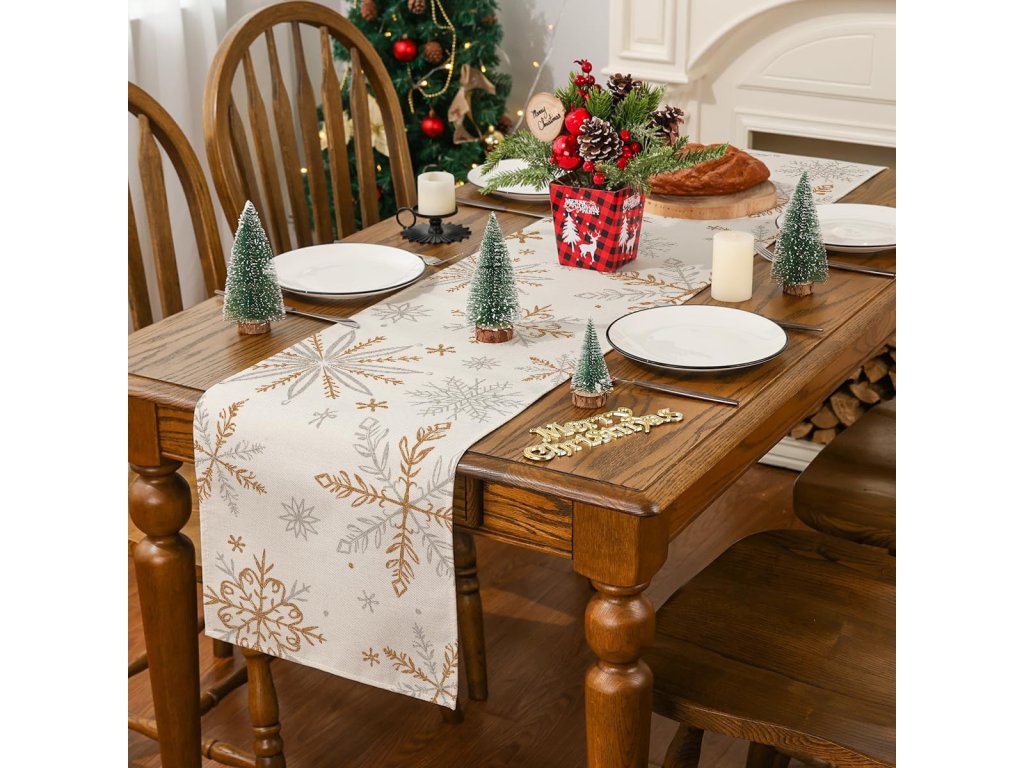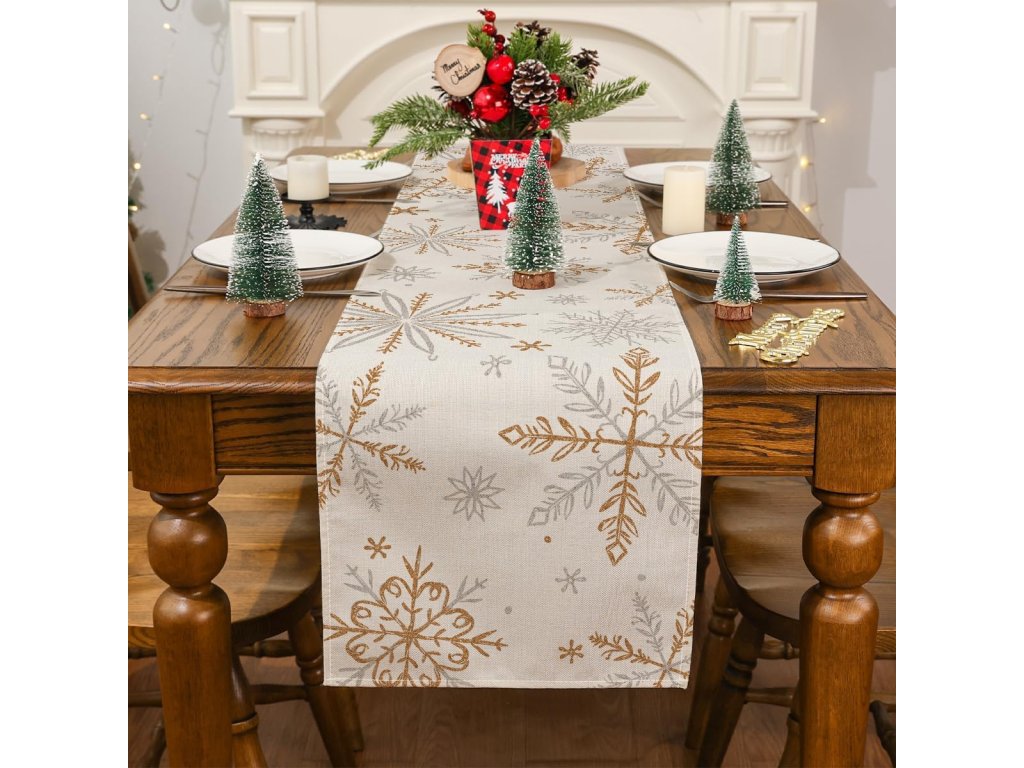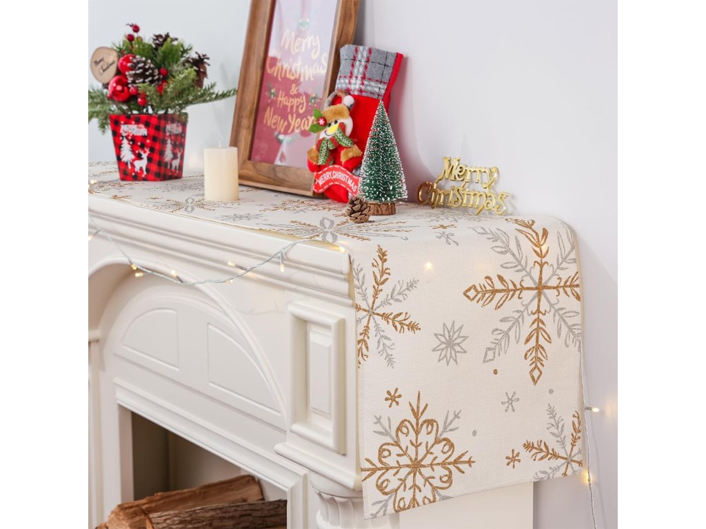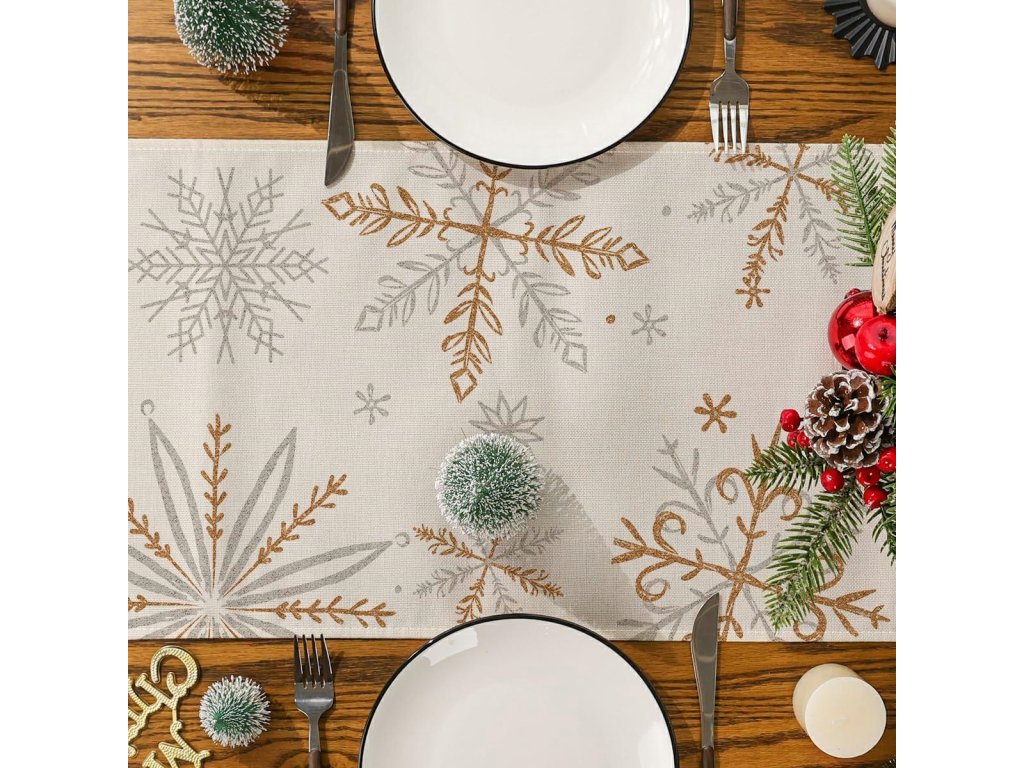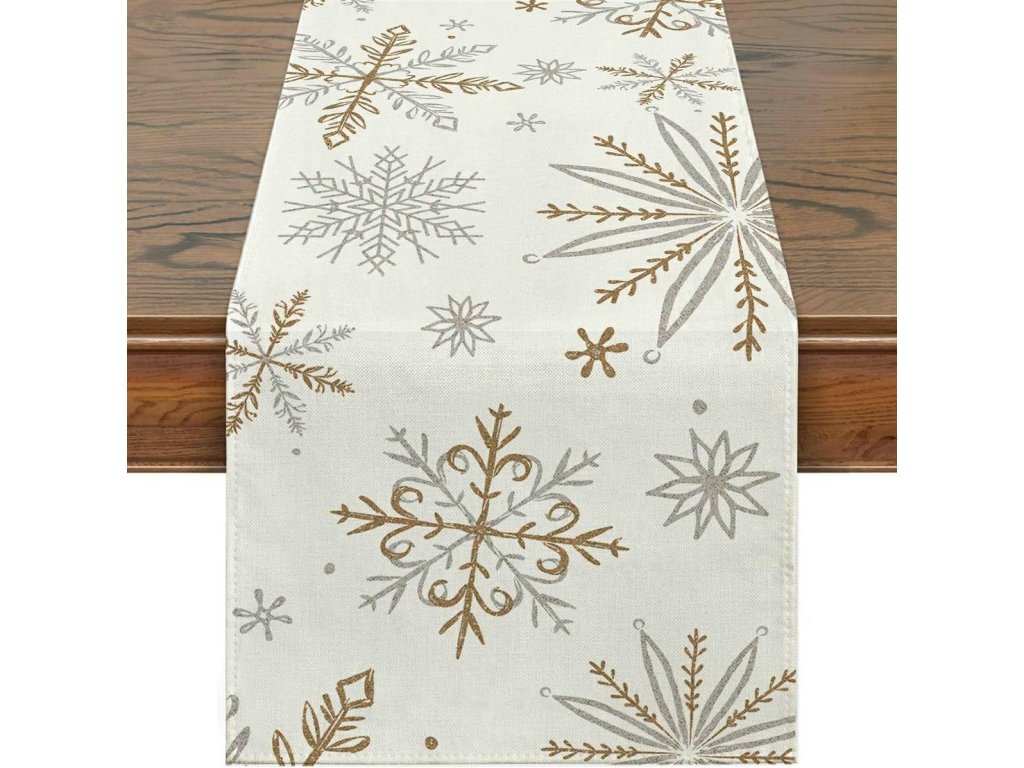 - Dekorativní běhoun na stůl s motivem sněhové vločky.