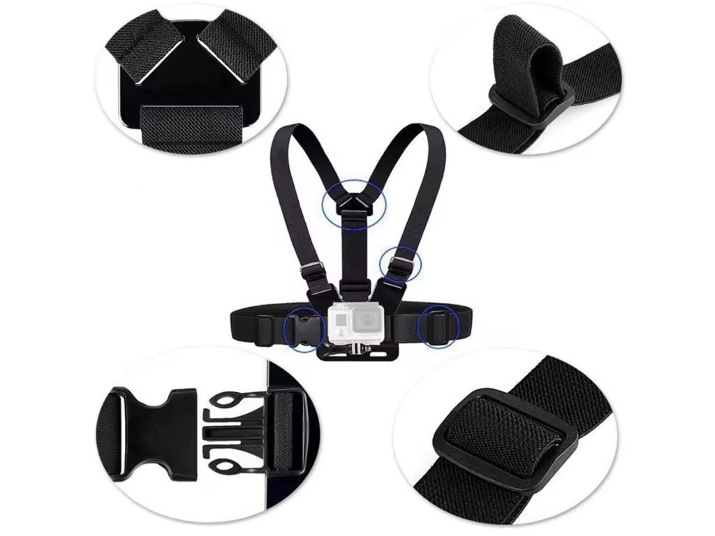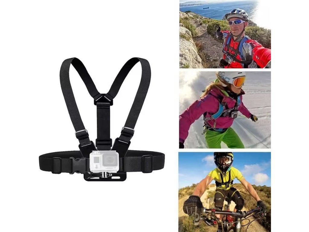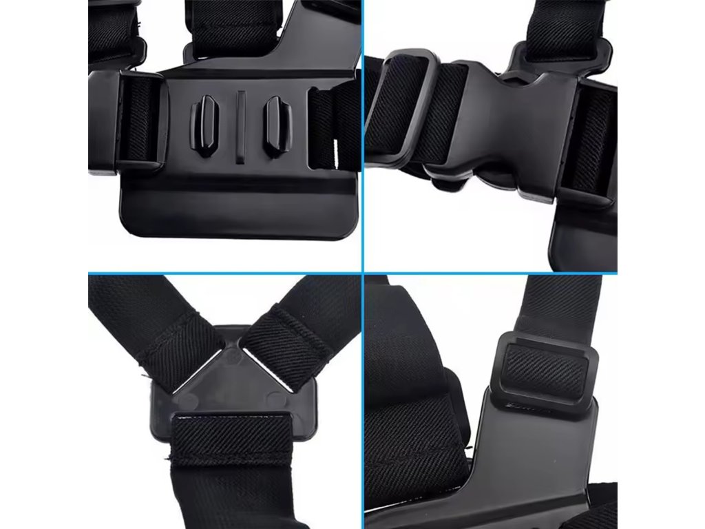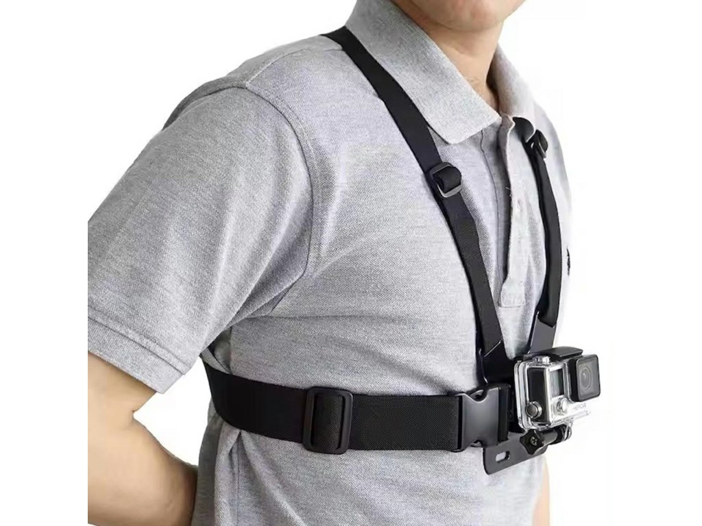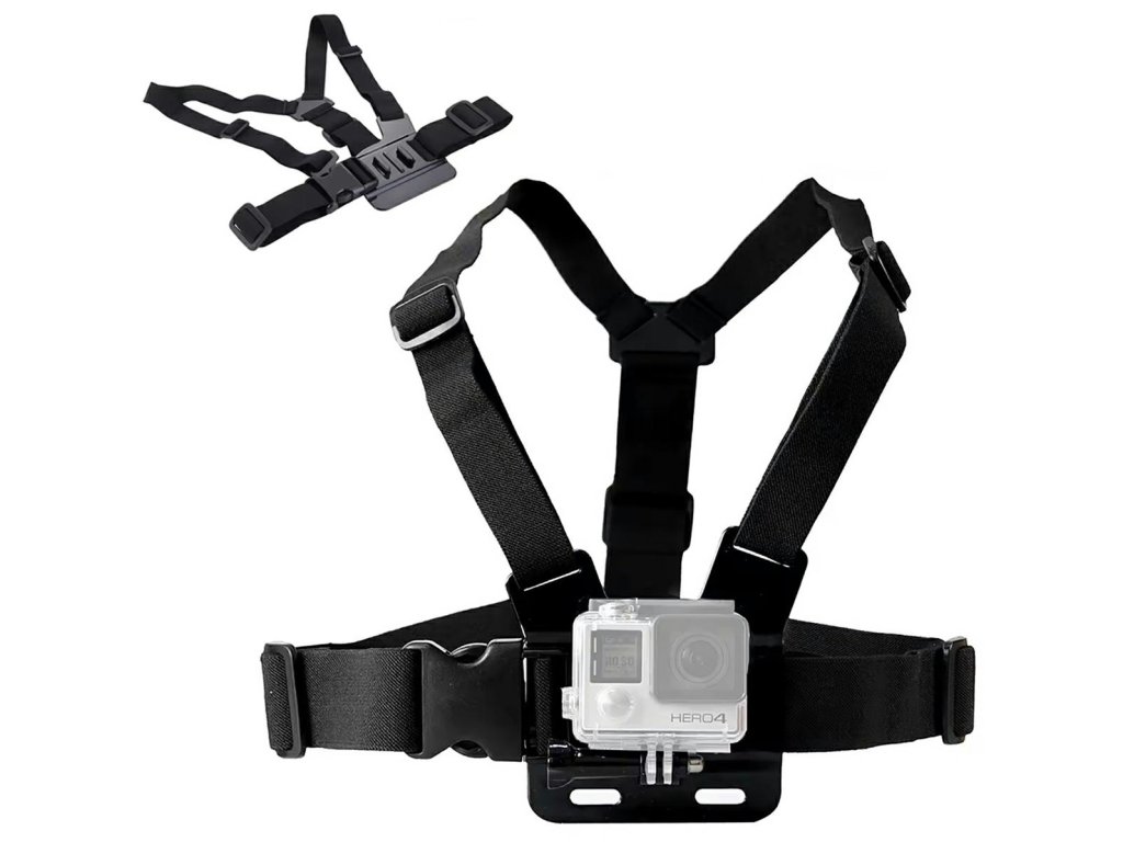 Pohodlný hrudní držák pro sportovní kameru GoPro. Hrudní držák umožňuje připevnění kamery na přední stranu. Ideální na sport, lyžování a cyklistiku. Univerzální design umožňuje připevnit jakýkoli model kamery od GoPro až po DJI, SJCAM a další výrobce. Měkké a pružné popruhy zajistí pohodlí při nošení držáku za všech podmínek. Součástí sady je také adaptér a montážní šroub, které umožňují připevnění smartphonu.