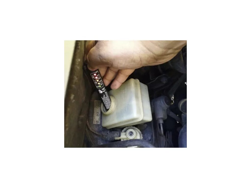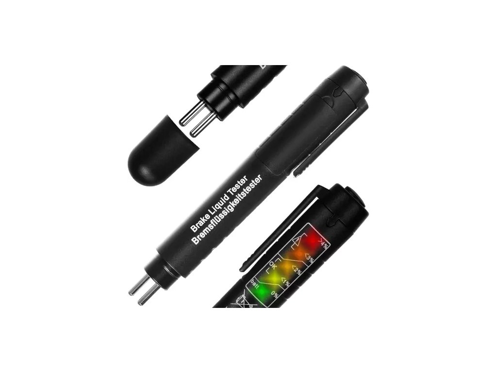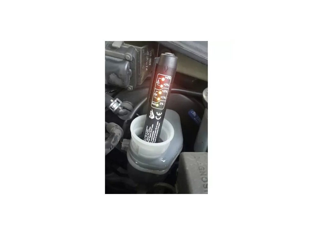 - PŘESNÝ - princip činnosti testeru je založen na měření obsahu vody v brzdové kapalině. Stačí ponořit elektrody do kapaliny . Díky přesnému měření pomocí indikátorů v podobě 5 LED diod, můžete si být jisti, že získáte přesné měření hladiny vody v brzdové kapalině.