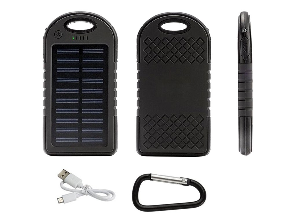 - Solární nabíječka s karabinou a USB kabelem