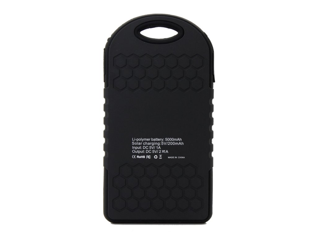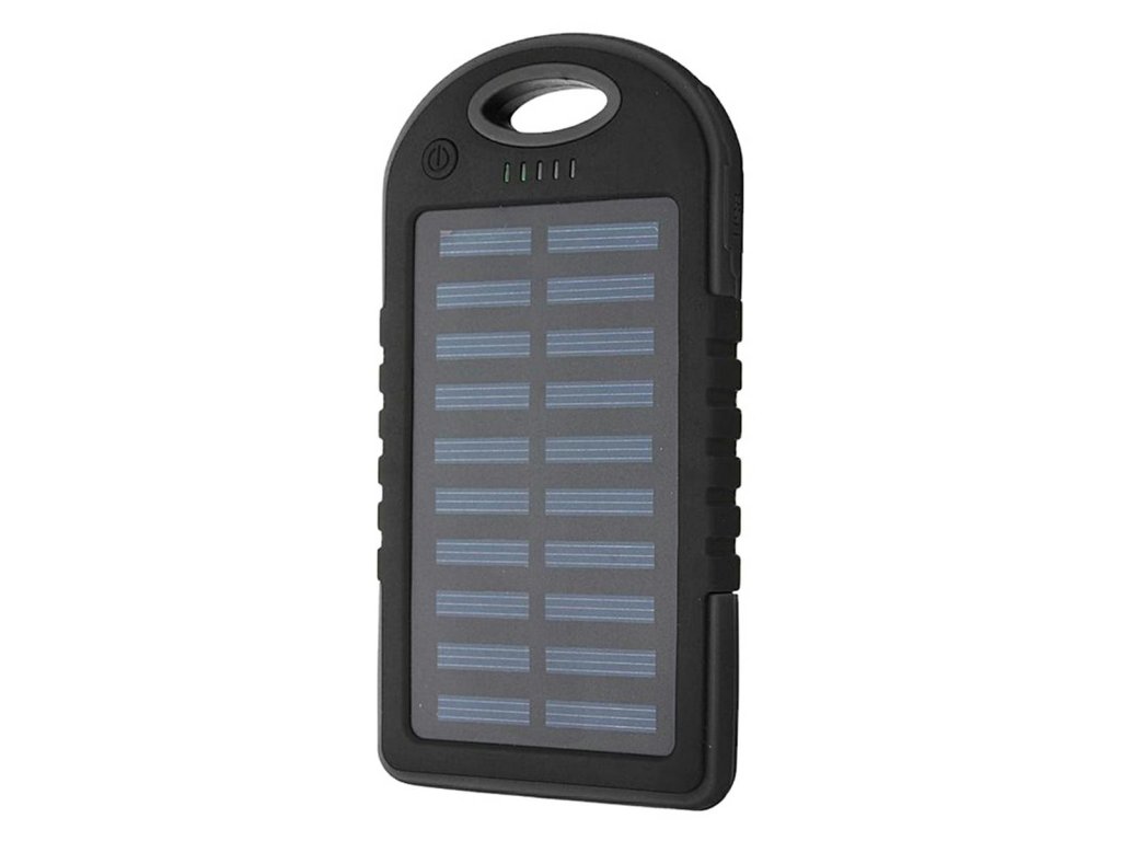 Solární nabíječka s kapacitou 5000 mAh a vestavěnou svítilnou. Ideální na cestování, kempování a všude tam, kde není elektřina.