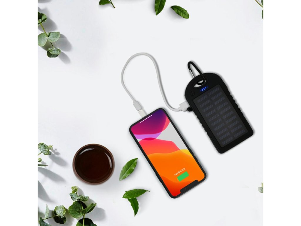 - Upozorňujeme, že solární panel dokáže nabít powerbanku maximálně do 3/4 její kapacity.