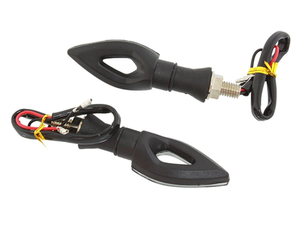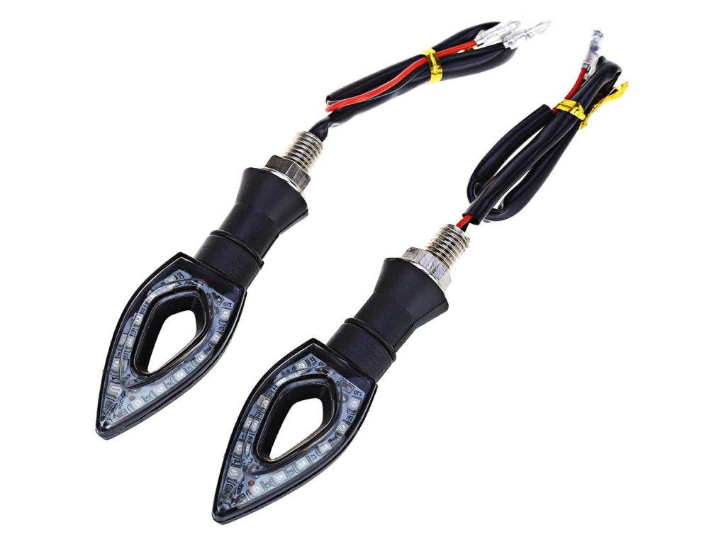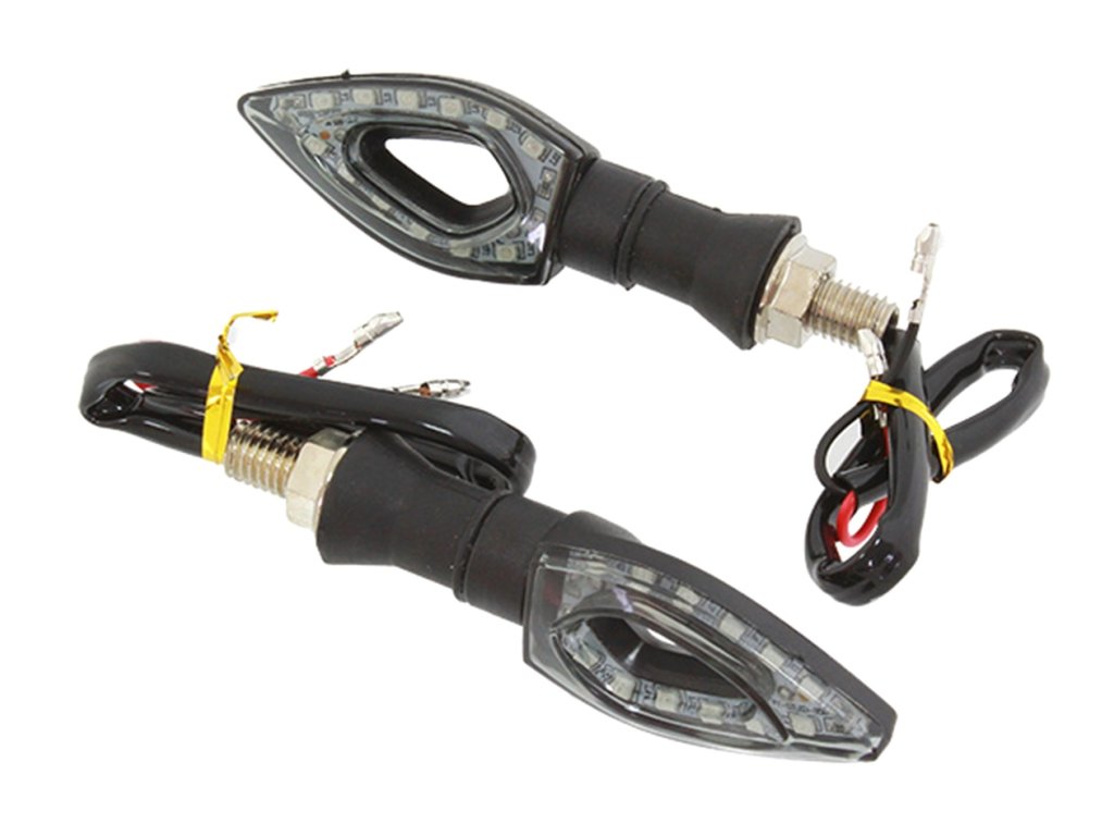 Univerzální 10x LED blinkry ve tvaru šipek. Perfektní doplněk k vaší motorce. LED diody poskytují silné oranžové světlo - výrazně zlepšují viditelnost! Ohebné rameno ochrání blinkr před nechtěným utržením.