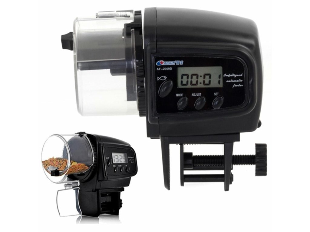 Automatické krmítko (automatické krmítko pro ryby) je perfektním řešením pro vaše akvárium. Moderní, snadno ovladatelný a velmi pohodlný. Inteligentní automatický podavač dokáže vydávat jídlo ve vločkách nebo granulích. Umožňuje provést až 4 krmení denně (24 hodin) - jednorázové nebo dvojité krmení po 1 minutě. Dávkování lze velmi jednoduše a přesně přizpůsobit potřebám vašich ryb. Díky regulaci dávkovaného množství jídla a také funkci dvojitého krmení můžeme jídlo přesně naporcovat. Tím se zabrání překrmování ryb a kontaminaci akvária.