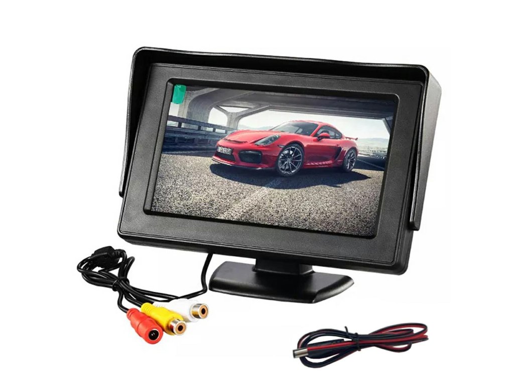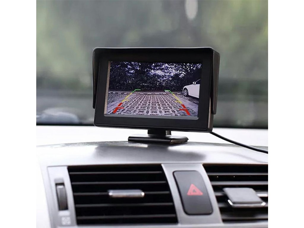 LCD displej s úhlopříčkou 4,3'' věnovaný auto couvací kameře. Perfektně spolupracuje s kamerami do auta pomocí konektorů RCA Cinch. Displej se automaticky přizpůsobí systémům PAL a NTSC. Pohodlný stojan umožňuje stabilní instalaci na palubní desku. Monitor má možnost nastavení úhlu sklonu.