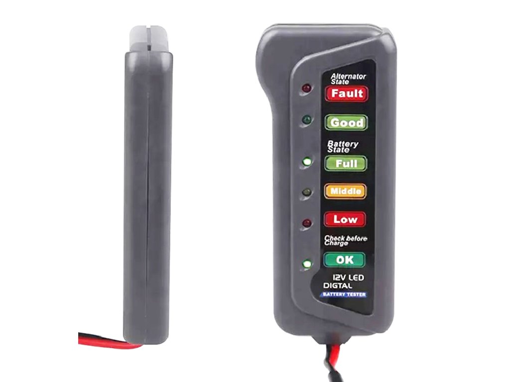 Kompaktní tester 12V baterií. Umožňuje kontrolovat úroveň nabití baterie na základě napětí na jejích svorkách. Funguje perfektně jako jednoduchý diagnostický nástroj pro určení účinnosti bateriových článků.