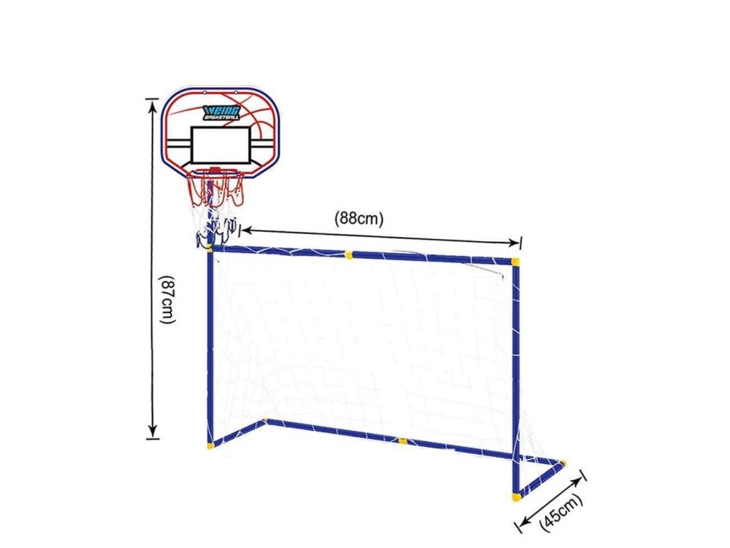 Sportovní set Merco Kid Set FB 2v1 je vytvořený pro ty nejmenší sporťáky a sporťačky ve věku 3+ let. Vytvořte svému dítěti v pokoji či na zahradě během pár minut malou fotbalovou branku navíc s basketbalovým košem, aby už od malinka mohl(a) trénovat a získat hned od začátku kladný přístup ke sportu. Konstrukce dětského setu je vyrobená z lehkého plastu, složení i rozložení trvá jen pár minut. Po složení má celý set rozměry (Š x V x H) 88 x 87 x 45 cm a váží pouhých 0,5 kg. Součástí setu je kromě samotné konstrukce i gumový basketbalový míček, fotbalový míček (průměr cca 12 cm), síťka na branku, síťka na basketbalový koš a malá ruční pumpička (délka 16 cm). Udělejte své malé ratolesti radost a pořiďte mu sportovní set Merco Kid Set FB 2v1. Rozměry balení: 41 x 26 x 8 cmDoplňkové parametry