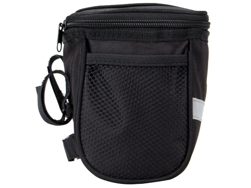 Prostorná cyklistická taška na řídítka vyrobená z odolného a snadno čistitelného voděodolného polyesteru. Mimořádně užitečné při delších i kratších výletech na kole. Taška je vybavena prostornou hlavní přihrádkou, 2 dalšími bočními kapsami a přihrádkou na mapu. Taška má také reflexní prvky, které zvyšují naši bezpečnost a činí nás viditelnými ve tmě. Taška se připevňuje na řídítka pomocí pásků na suchý zip.