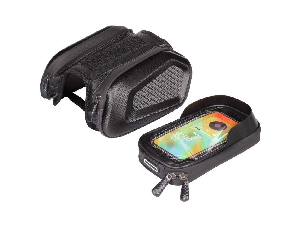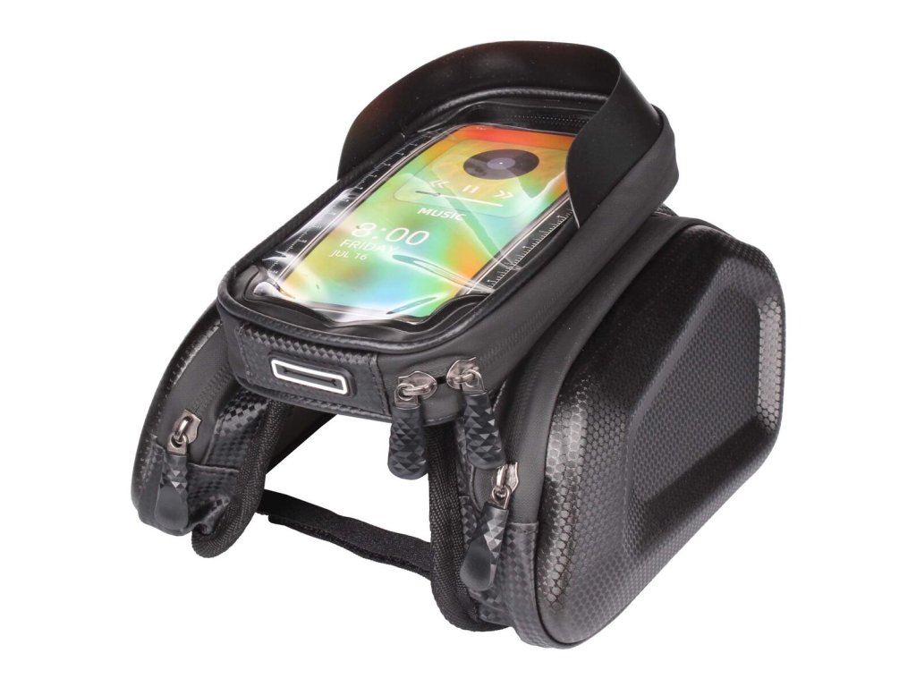 Brašna na kolo Merco Tube 2.0 je skvělý doplněk každého cyklisty, který potřebuje na svůj výlet to nejnutnější. Tato brašna 2v1 se upevňuje na rám kola jednoduše a rychle díky suchým zipům. Voděodolná brašna nabízí dvě postranní kapsy, které mají tvrdou a pevnou skořepinu a vy se tak nemusíte bát o své drobnosti jako peněženka, brýle, klíče apod. Výhodou této brašny je i horní pouzdro na mobil, které ve vteřině připevníte či odejmete díky suchému zipu. Mobil snadno ovládáte díky transparentní fólii a díky výstupu na sluchátka můžete poslouchat i svou oblíbené písničky. Parametry: - materiál: PU kůže + TPU + PE - rozměry: 19 x 16 x 16 cm (D x Š x V) - pouzdro na mobil: 6,5 in / 16 x 8,5 cm - váha: cca 300 g - transparentní pouzdro na mobil s vývodem na sluchátka - 2 boční kapsy na drobnosti: 18 x 10 x 3 cm - jednoduchá montáž bez nářadíDoplňkové parametry