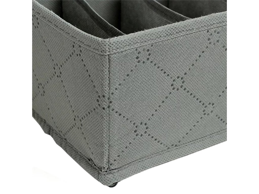 Sada 3 zásuvkových organizérů. Vložky poskytují jednoduchý, praktický a levný způsob, jak uspořádat vaši sbírku kravat, ponožek, opasků a spodního prádla. Sada obsahuje tři organizéry různých velikostí, počtu přihrádek a použití. Jsou vyrobeny z pevného, prodyšného materiálu. Otevřený design umožňuje rychlý přístup k oblečení. Skládací funkce umožňuje dodatečnou úsporu místa, když nepoužíváte jednu z vložek.