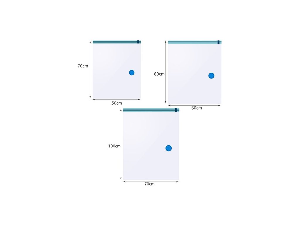 - SPECIFIKACE - barva: transparentní / modrá; rozměry: (šířka/délka) 50x70cm – 5 ks; (šířka/délka) 60x80cm – 5 ks; (šířka/délka) 70x100cm - 5 ks; hmotnost: 1 242 kg; hmotnost v balení 1 442 kg.