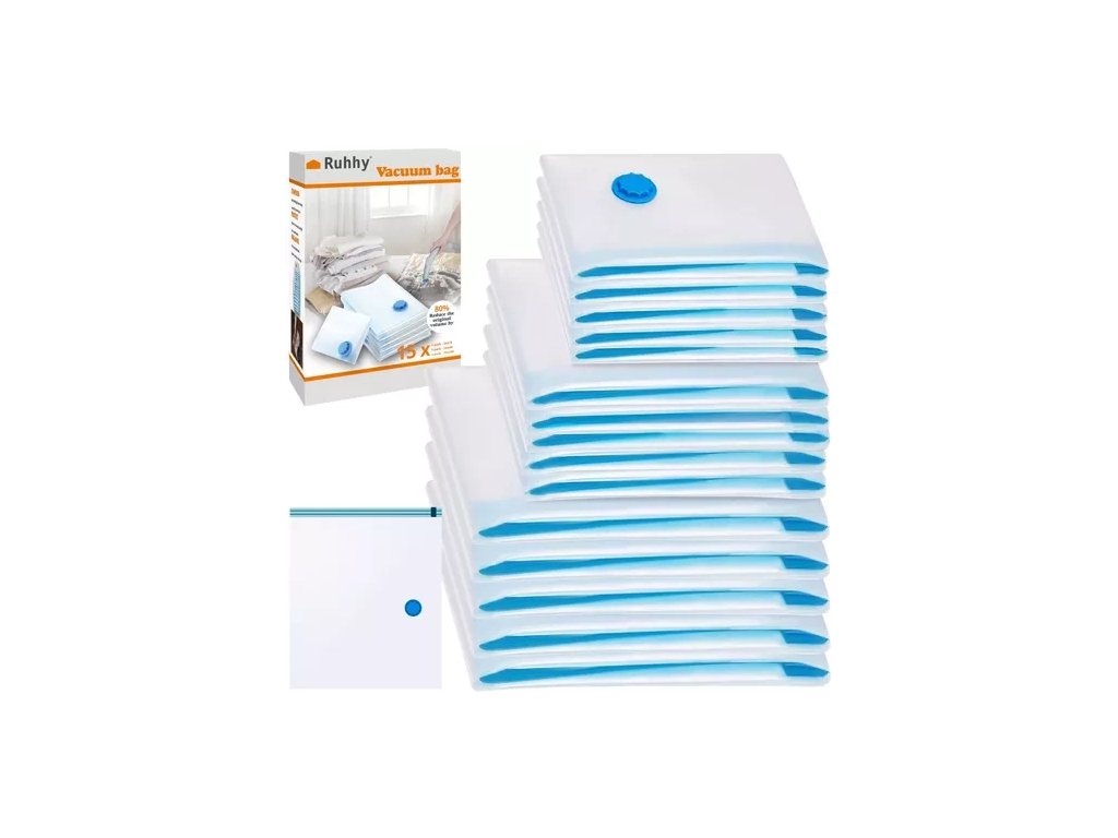 Sada 15 vakuových sáčků je opakovaně použitelná. Uložené věci jsou dokonale chráněny proti prachu, špíně, vodě, vlhkosti a molům. Oblečení uložené bez přístupu vzduchu zůstane déle čerstvé a vypadá jako nové. K odsávání vzduchu stačí použít běžný vysavač. Tašky vám umožní ušetřit spoustu místa.