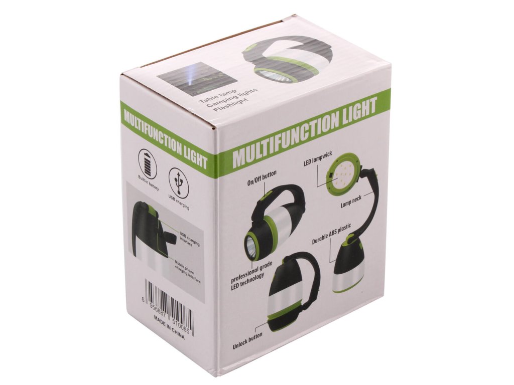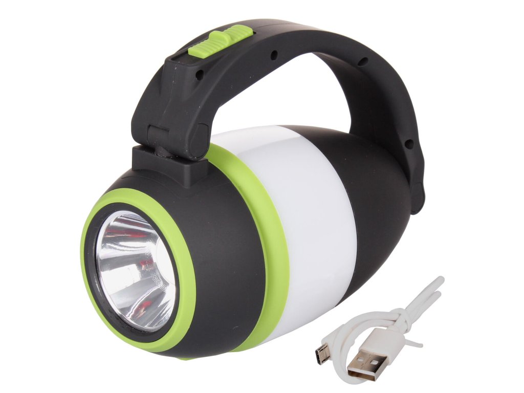 Mít při sobě silný zdroj světla je výhodné nejen při kempování nebo rybaření, ale prakticky všude, kde vás může zastihnout tma. Kempingová lampa Camp Light je skvělým řešením pro tyto případy. Lampa má několik možností využití - může vám posloužit jako osvětlení při kempování, jako přenosná svítilna a nebo jako stolní lampa, která má možnost naklopení a otočnou hlavici o 180°. Zdrojem světla jsou LED diody, které mají 3 možnosti nastavení svícení, kdy přepínat můžete jedním tlačítkem. Tlumené světlo, které je vhodné jako noční osvětlení, silné světlo určené pro svícení jako stolní lampa a svítilna, která dosvítí do vzdálenosti 100 – 200 m. Kempingová lampa také slouží jako zdroj nouzového proudu – power banka, která má standardní USB výstup, kterým můžete nabít například svůj mobilní telefon. Konstrukce svítilny je vyrobena z odolného ABS plastu. Lampa vydrží svítit 5 – 8 hodin, v závislosti na zvoleném režimu svícení. Napájí se pomocí zabudované lithiové baterie, která se dobíjí pomocí USB kabelu (je součástí balení). Výhodou lampy Camp Light je její nízká hmotnost (240 g), díky které ji snadno sbalíte do batohu nebo zavěsíte do stanu. Další výhodou je odolnost lampy vůči dešti. Parametry: Materiál: odolný plast ABS Váha: 240 g Funkce: přenosná svítilna, stolní lampa, kempingové osvětlení, power banka Napájení: zabudovaná lithiová baterie 18650 Výdrž baterie: 5 – 8 h Napětí: 3.7 V – 4.2 V Nabíjení: univerzální USB rozhraní Dosvit: 100 – 200 m Voděodolnost: IPX45 (odolné vůči dešti) El. výkon: 5 W Svítivost: 350Doplňkové parametry