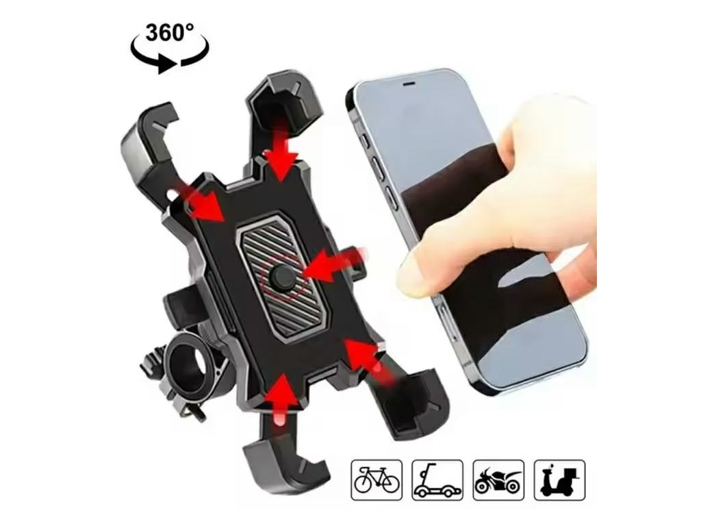 Univerzální, nastavitelný držák na telefon na kolo. Velmi snadná instalace a použití – pasuje na všechny typy mobilních zařízení. Zajišťuje stabilní držení během jízdy. Šířku objímky lze nastavit a základnu lze plně otočit (360 stupňů).