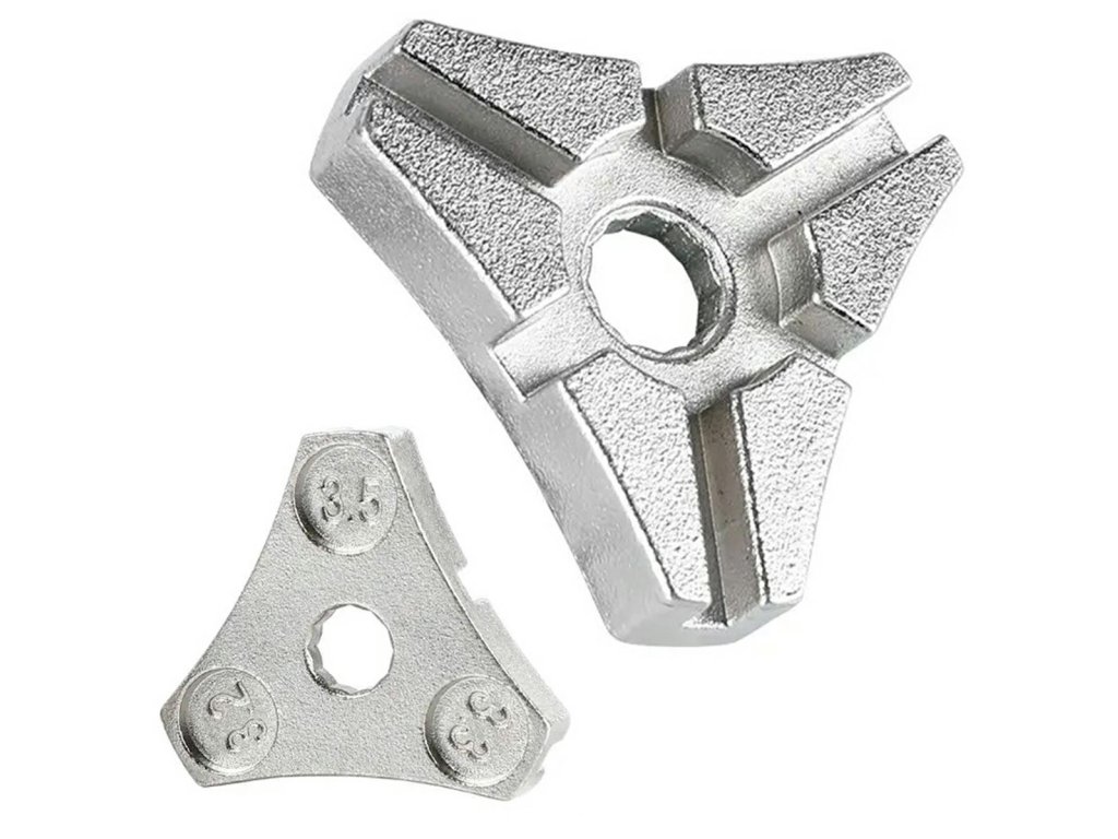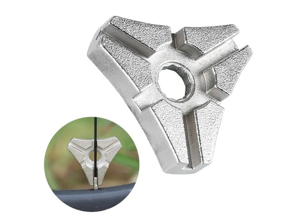 - Trojhranný klíč používaný pro centrování kol.