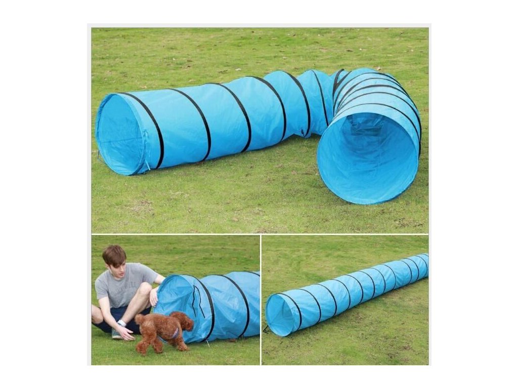 Prolézací tunel Tunnel Tent zprostředkuje dětem spoustu bezpečné zábavy, ale poslouží i jako pomocná překážka pro drezurování psů při přípravě na agility soutěže. Jednobarevný, azurově modrý tunel je vyrobený z jednovrstvé a prodyšné polyesterové látky a zapošitého spirálového drátu. Lehká tkanina se snadno udržuje čistá za použití vodou namočeného hadříku. Délka tunelu je buď téměř 300 cm nebo téměř 520 cm s hmotností cca 1,4 nebo cca 2,3 kg v závislosti na preferovaném modelu. Tunnel Tent se snadno rozloží i sbalí během několika sekund do příslušné cestovní brašny. Tunnel Tent je dostupný ve dvou rozdílných délkách s jednotným průměrem 60 cm. Ke každému z tunelů patří sada kovových kolíků pro ukotvení k zemi. Získejte prolézačku Tunnel Tent pro děti nebo pro své pejsky a zprostředkujte jim pestrou zábavu v pohodlí domova. Upozornění: Nepoužívejte prolézací tunel na hrubých a drsných plochách, jako je beton a dlažba.Doplňkové parametry