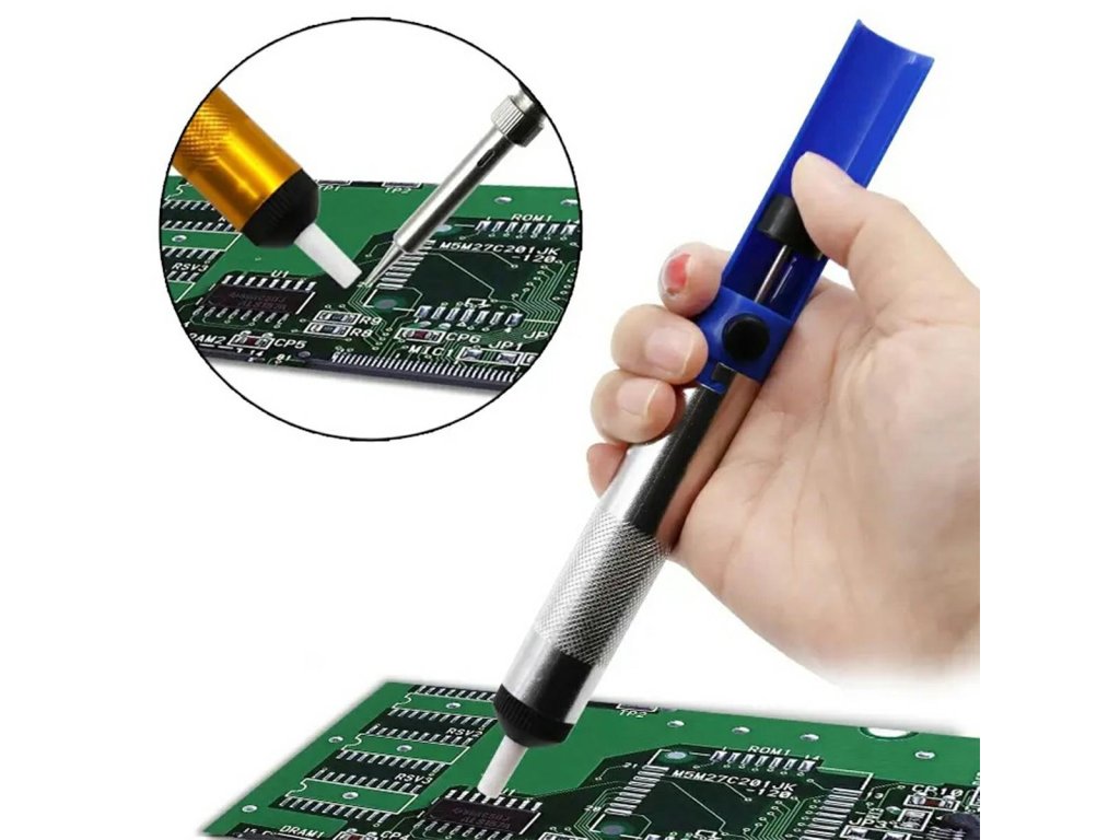 Kompaktní ruční odsávačka pájky. Je ideální pro odstraňování přebytečné pájky během pájení a odpájení elektronických součástek. Díky štíhlé konstrukci je nástroj vybaven kovovým válcem s vysokým sacím výkonem a snadno se s ním manipuluje během servisních prací.
