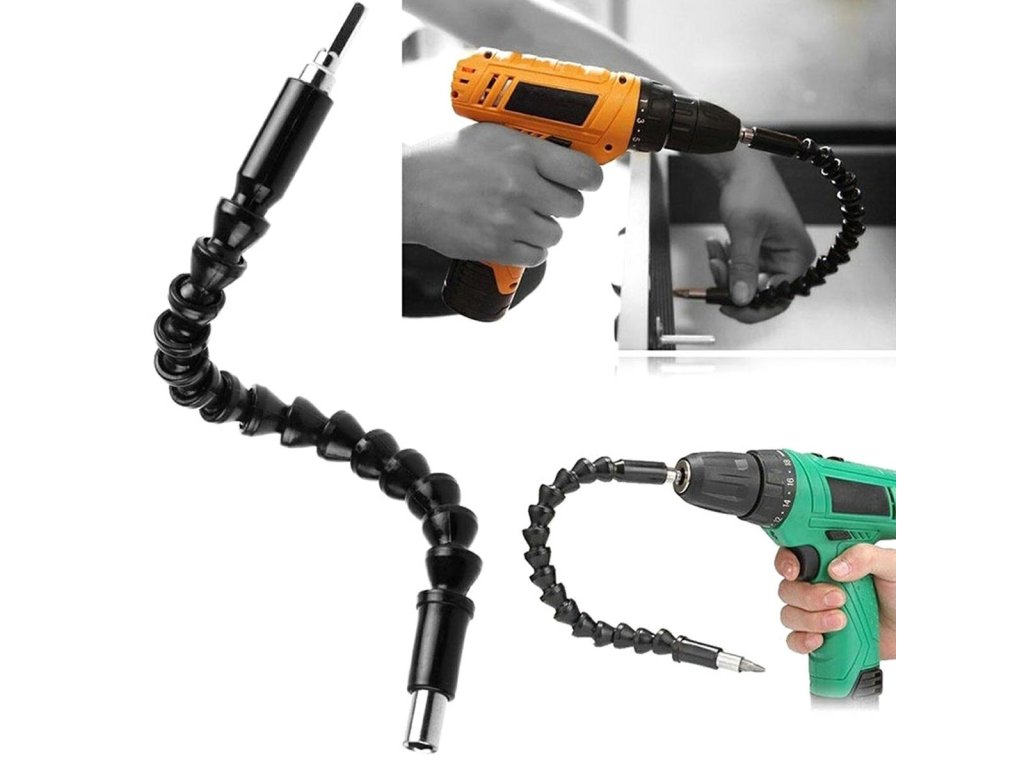 - Prodloužení před vrtáním jednoduše ohněte a nasaďte na vrtačku a na konec šroubovacího nástavce!