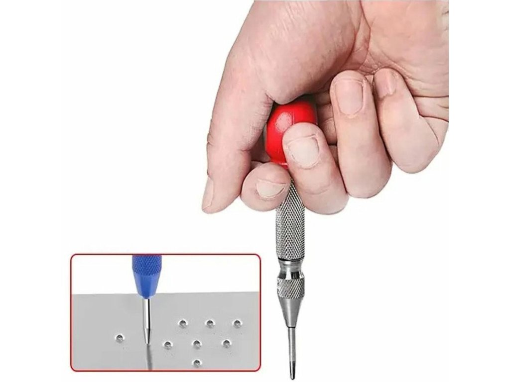 Kompaktní kovový automatický důlčík. Výrazně zjednodušuje vrtání tím, že umožňuje označit hrot před zahájením vrtání. Vroubkované tělo zajišťuje bezpečný úchop během označování.