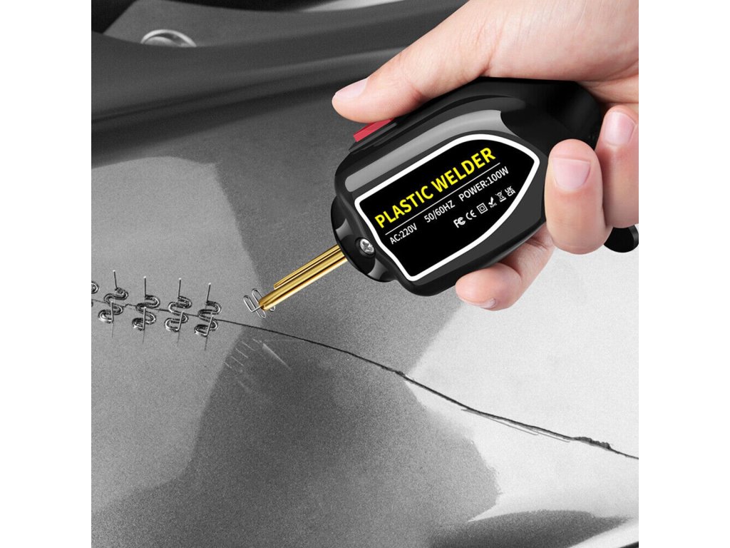 Výborná sada pro opravy plastových prvků, svařování plastů a maskování případných prasklin.