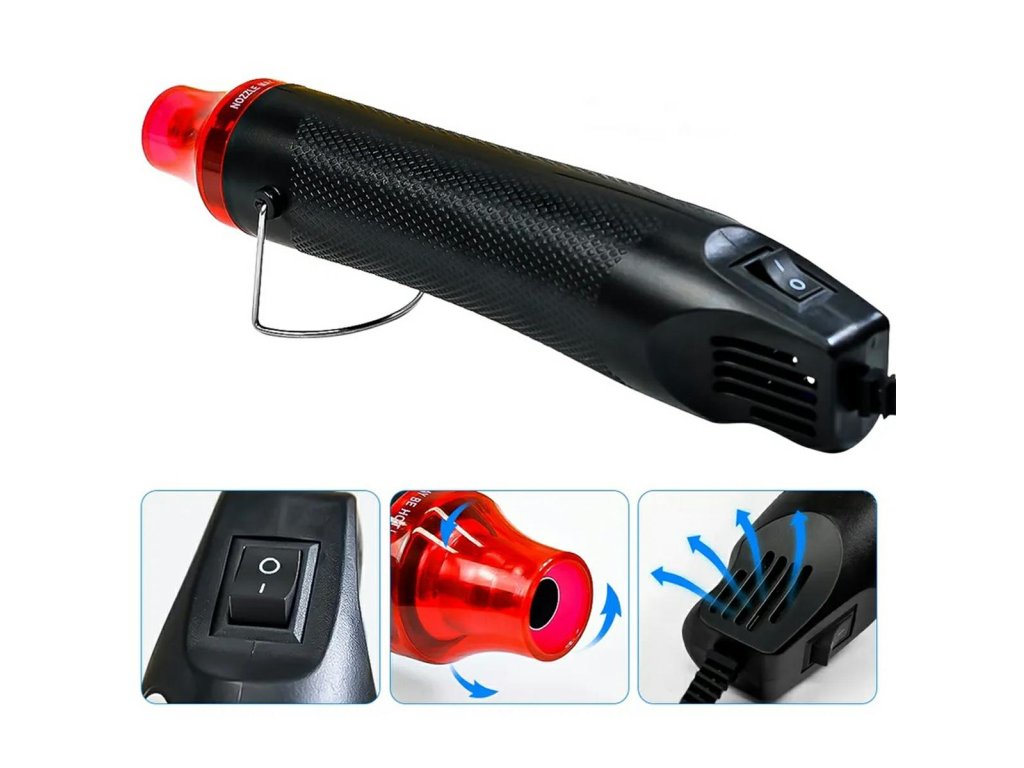 - Lehká ruční horkovzdušná pistole určená pro bodové nahřívání. Je ideální pro oddělování elektronických součástek, nahřívání smršťovacích bužírek a urychlení schnutí barev a laků.
