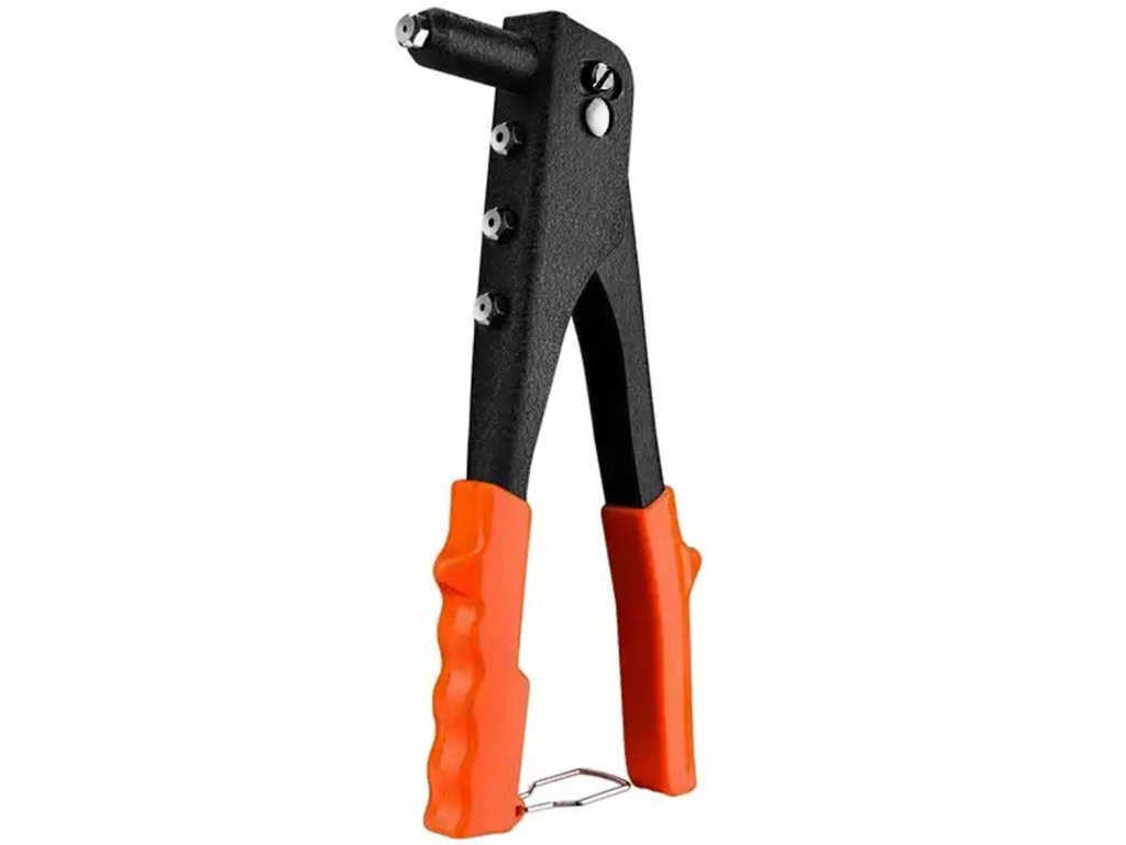 Pevný, ruční nýtovač vybavený 4 hroty v závislosti na průměru nýtu. Slouží k rychlému a trvalému spojení plochých tyčí a plechů, kůže, PVC a dalších materiálů, které nelze svařovat ani lepit. Pogumovaná ergonomická rukojeť pro pevné uchopení a pohodlnou práci. Vroubkovaný válcový límec zajišťuje pevné přilnutí k upevněnému prvku.