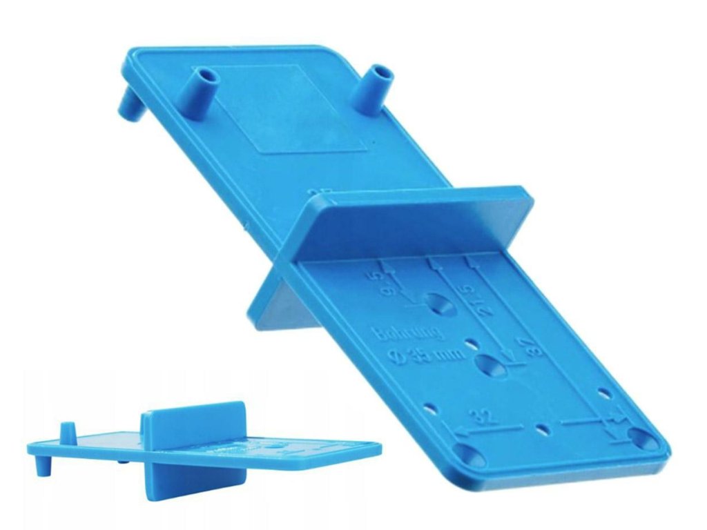 - Univerzální šablona pro montáž nábytkových pantů.