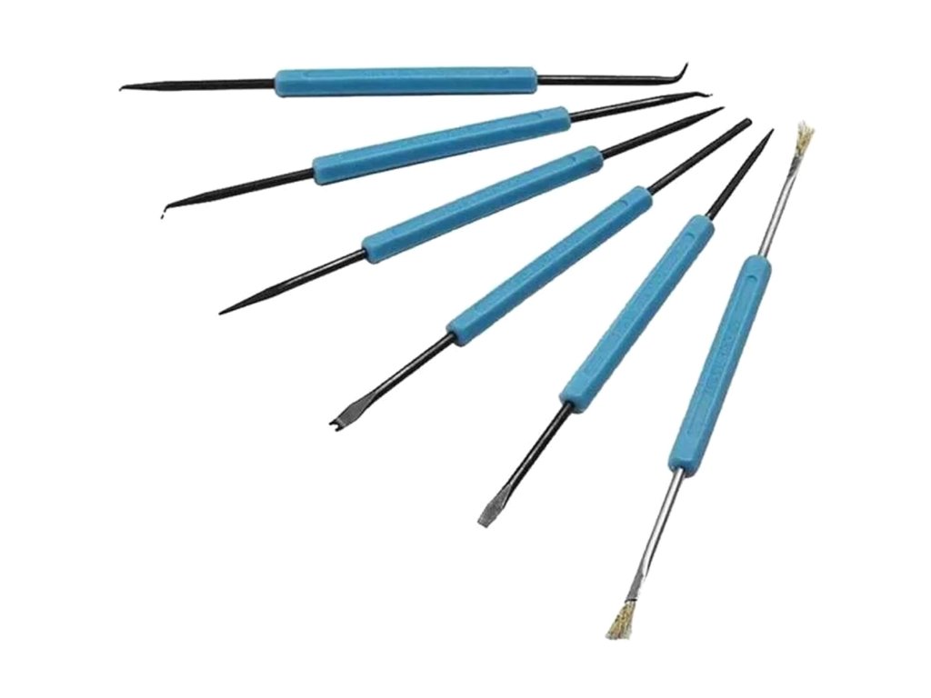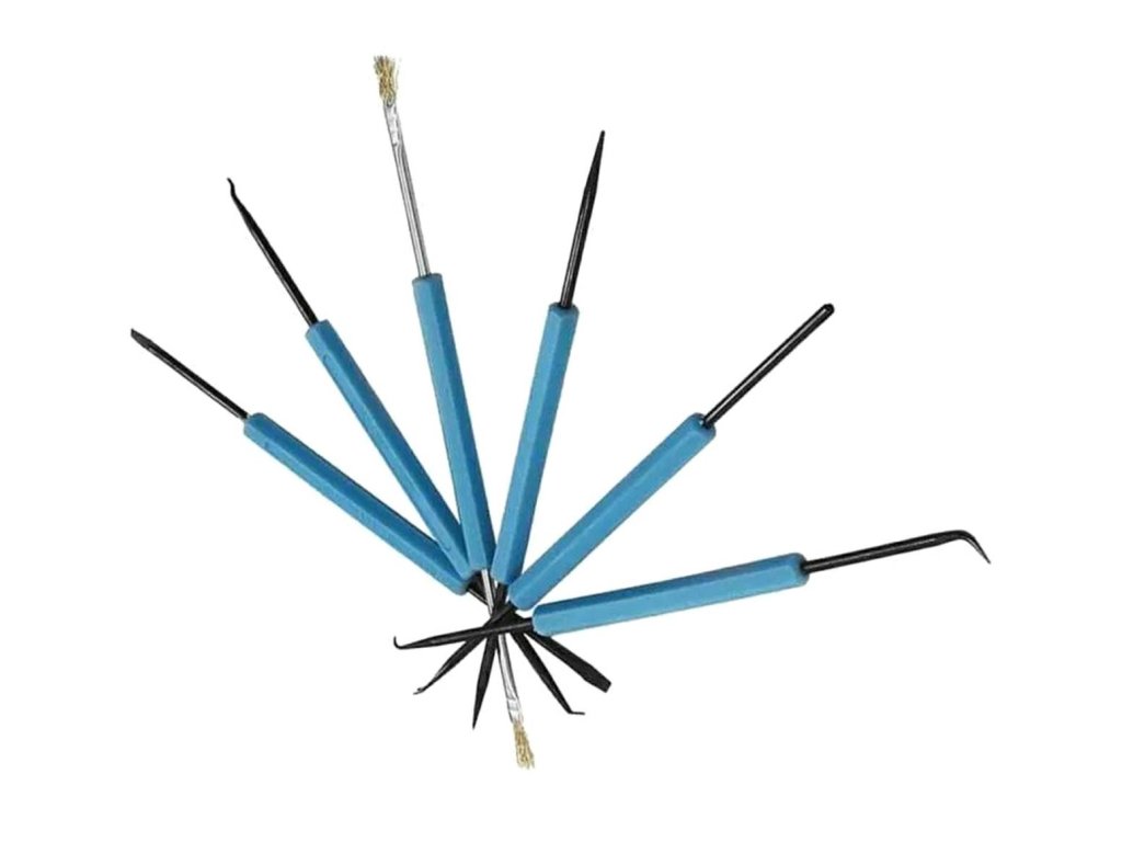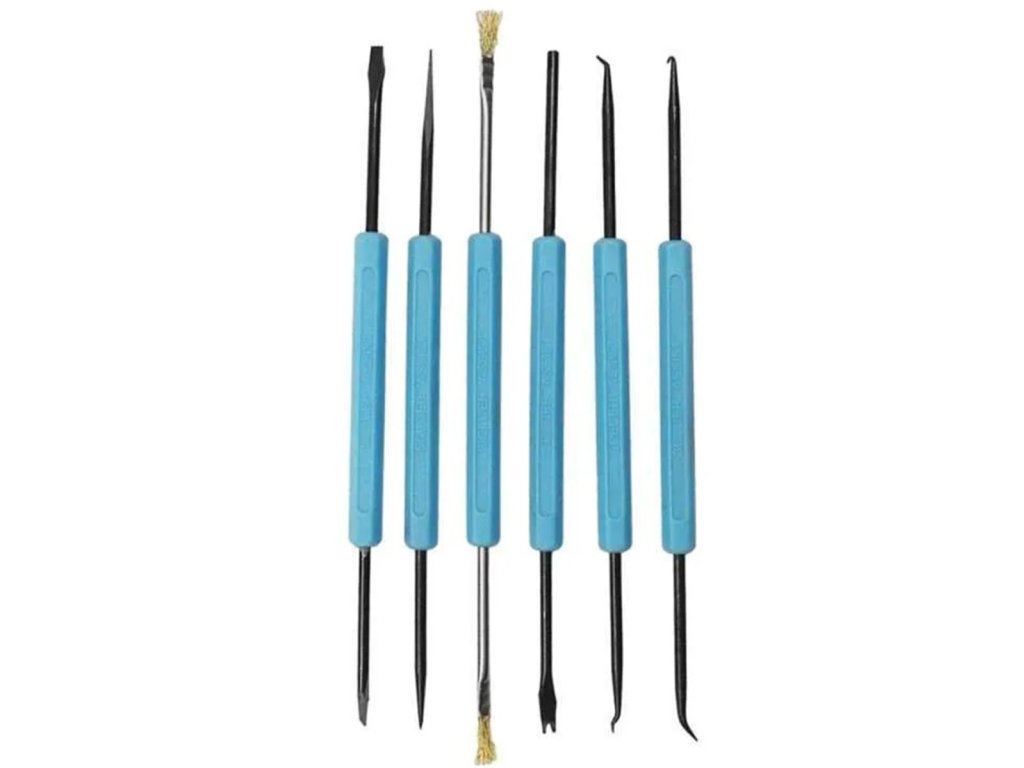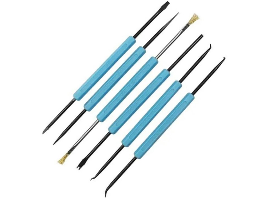 - Sada šesti nástrojů pro čištění a vypáčení elektronických součástek.