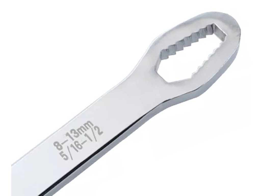 - Kompaktní nástroj, který úspěšně nahradí sadu samostatných plochých klíčů.