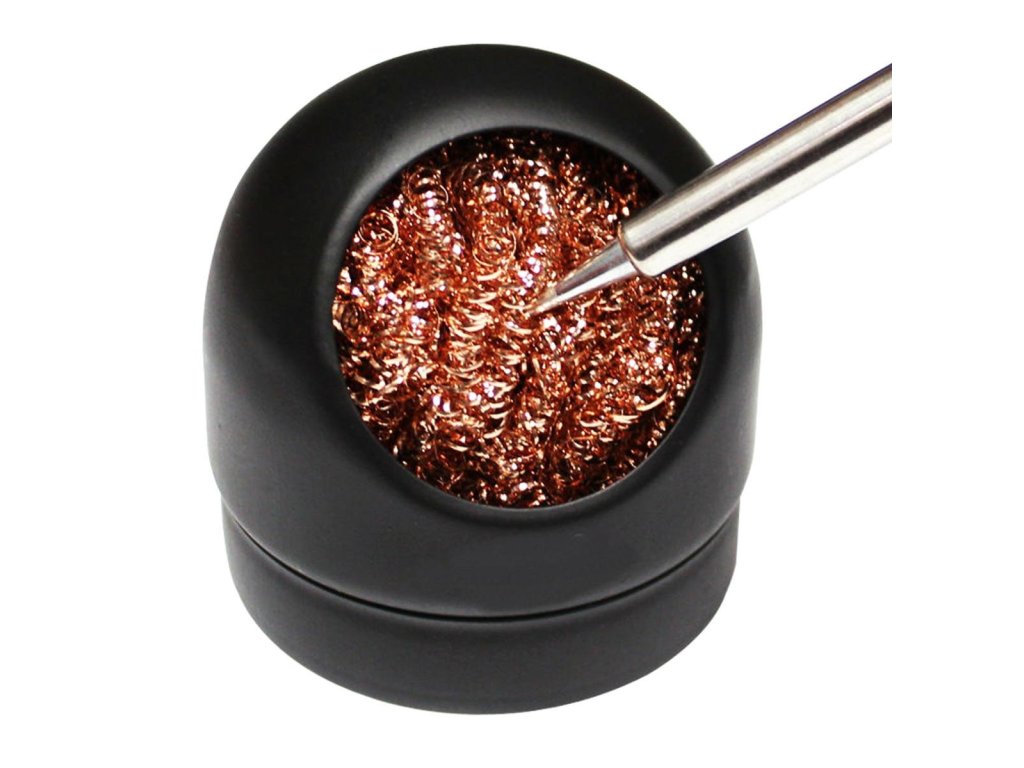 Čistič pro čištění hrotů páječky. Pevná kovová základna s velkým otvorem, vyplněná kovovými hoblinami, která je ideální pro intenzivní pájení vyžadující časté čištění hrotu. Čistič je bezúdržbový (nevyžaduje mokré čištění) a nesnižuje teplotu hrotu.